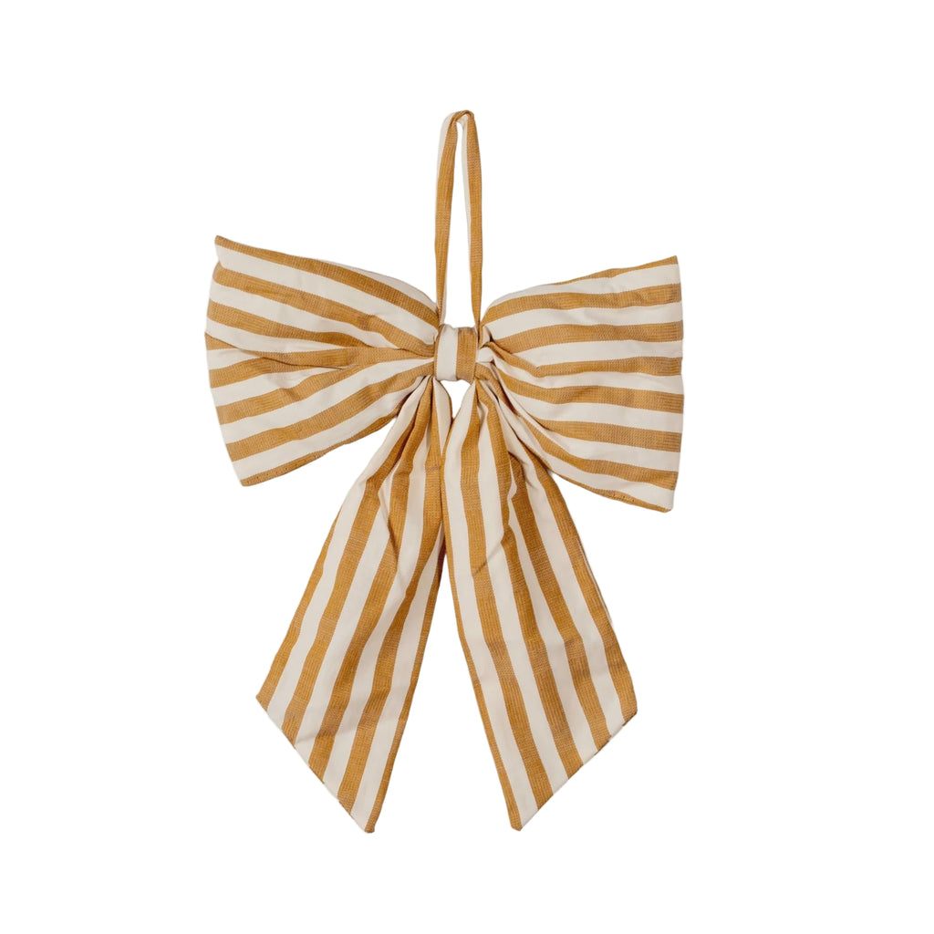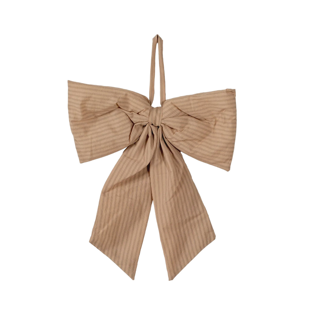 Hanging Door Bow - Medium - Stripe Cream/Fern