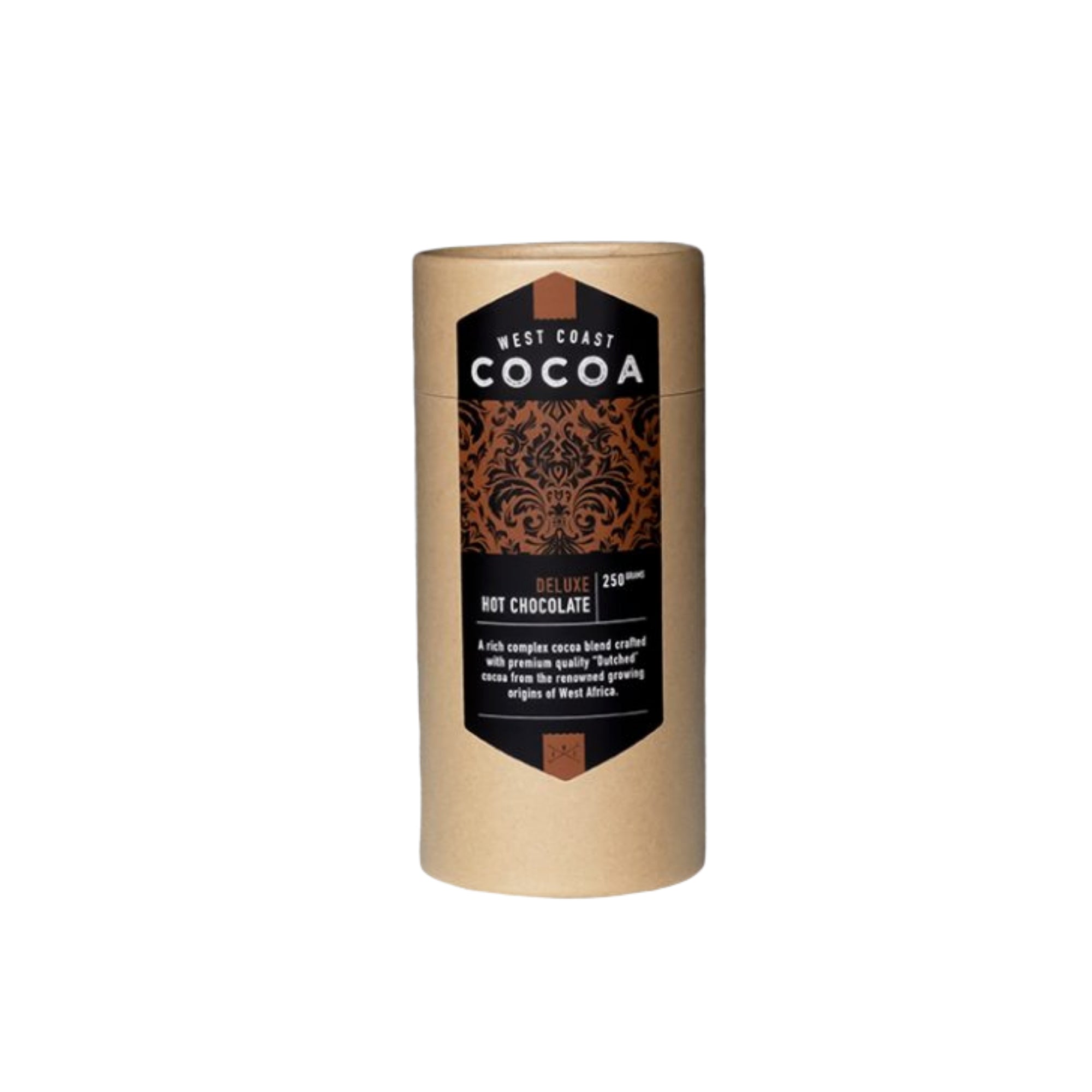 This Deluxe drinking hot chocolate is a rich complex hot chocolate, crafted with premium quality ‘Dutched’ cocoa sourced from the renowned cacao growing regions of West Africa.