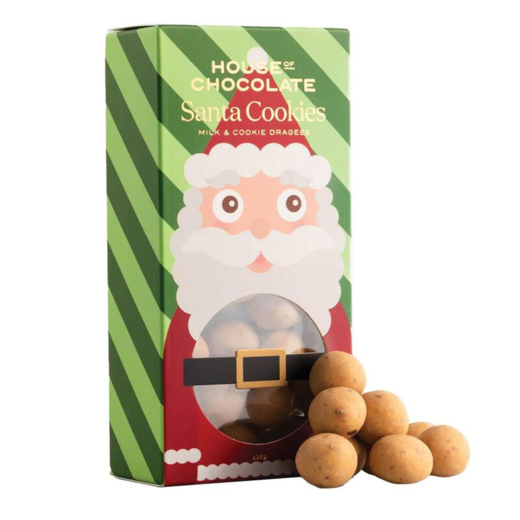 A caramelised white chocolate bar with hazelnut topping in a brown, pink and white splotch package labelled "house of chocolate" with the subtitle "Hazelnut caramelised white chocolate bar" against a white background