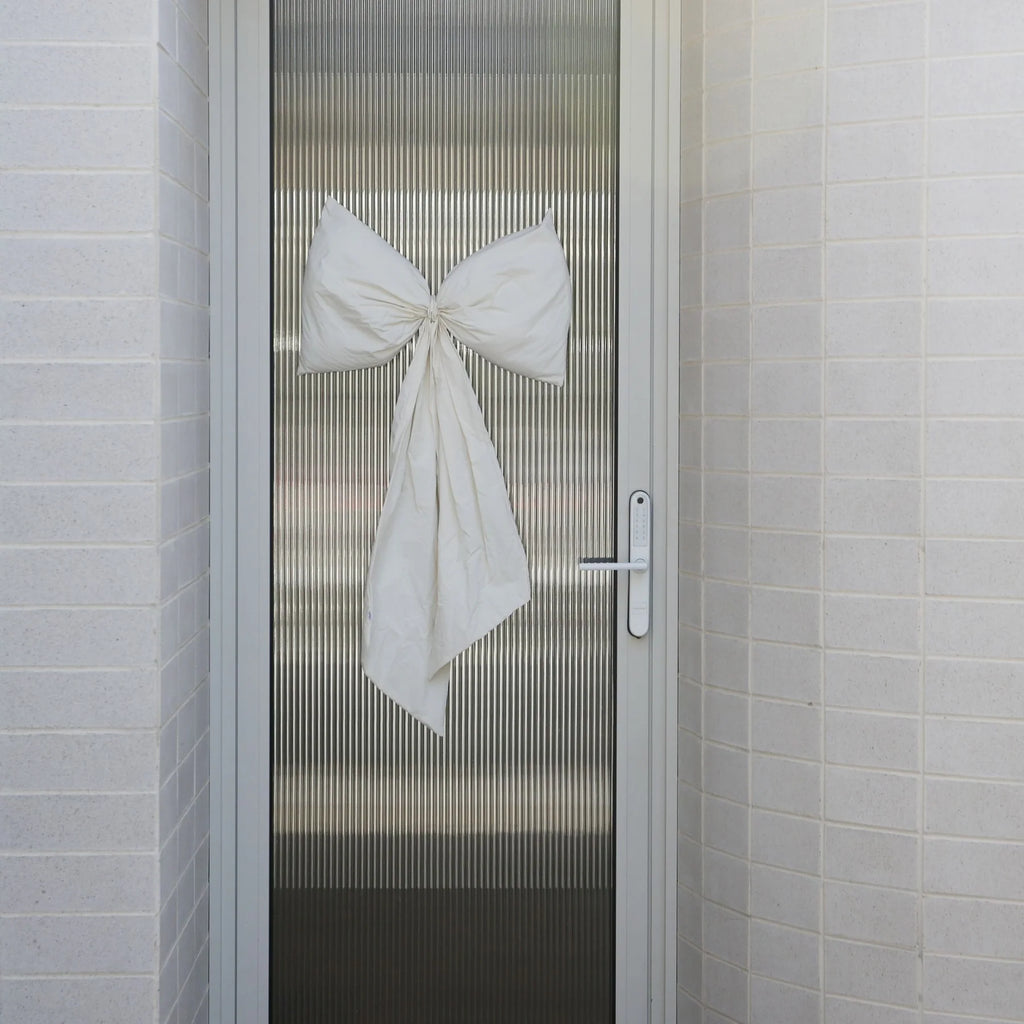 Hanging Door Bow - Medium - Stripe Cream/Fern
