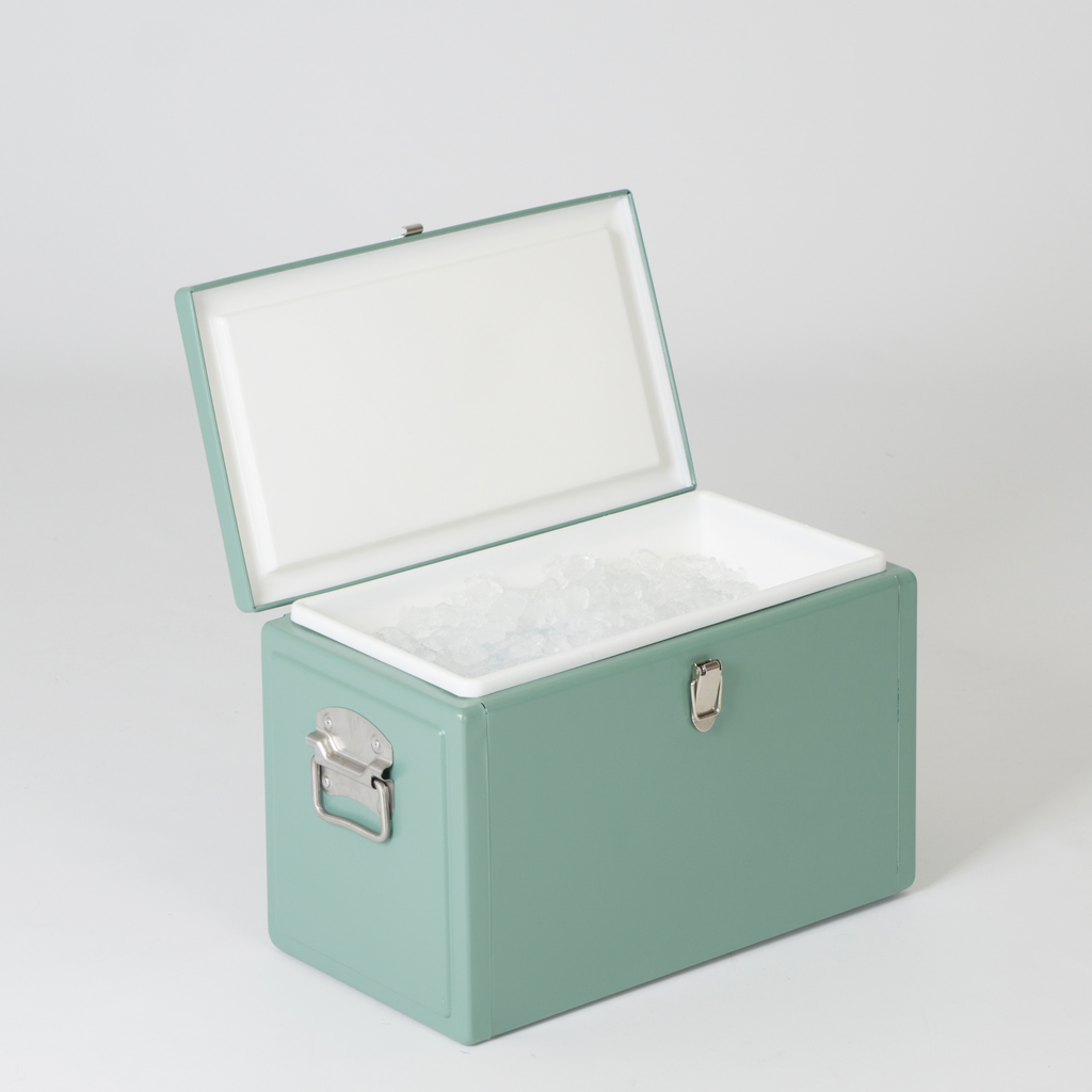 Floral-patterned cooler bag with a visible brand logo on a white background