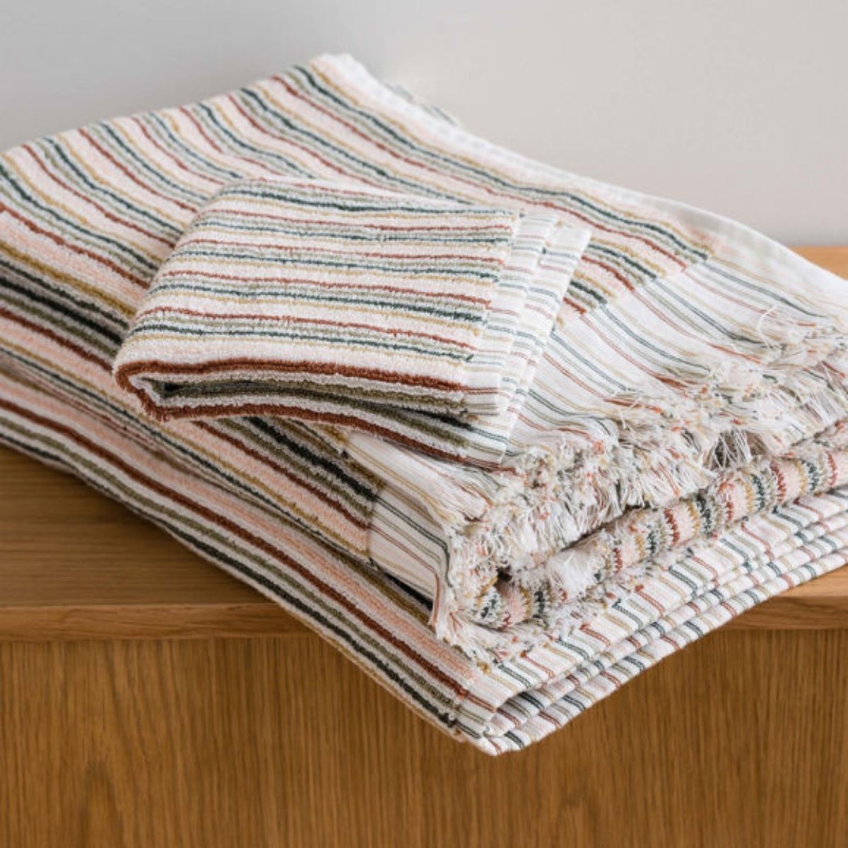 This alice organic bath towel will add a pop of colour to your bathroom thanks to its coloured stripes that inspire a nostalgic vibe. Designed in New Zealand and made using 100% cotton. 80cm x 150cm
