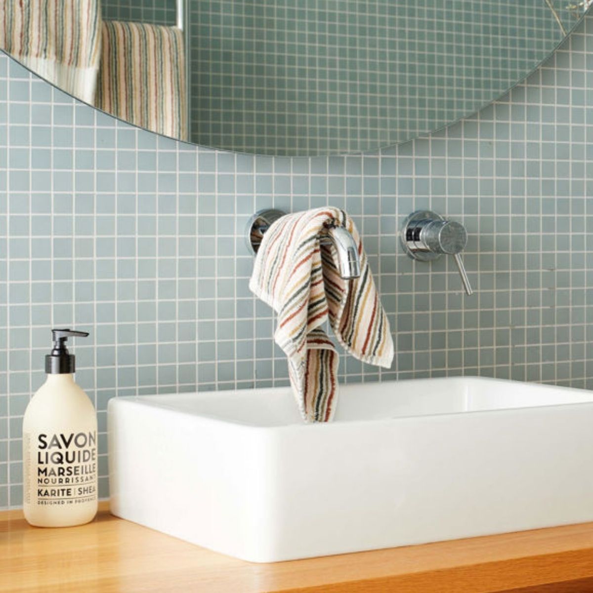 This alice organic hand towel will add a pop of colour to your bathroom thanks to its coloured stripes that inspire a nostalgic vibe. Designed in New Zealand and made using 100% cotton. 50cm x 70cm