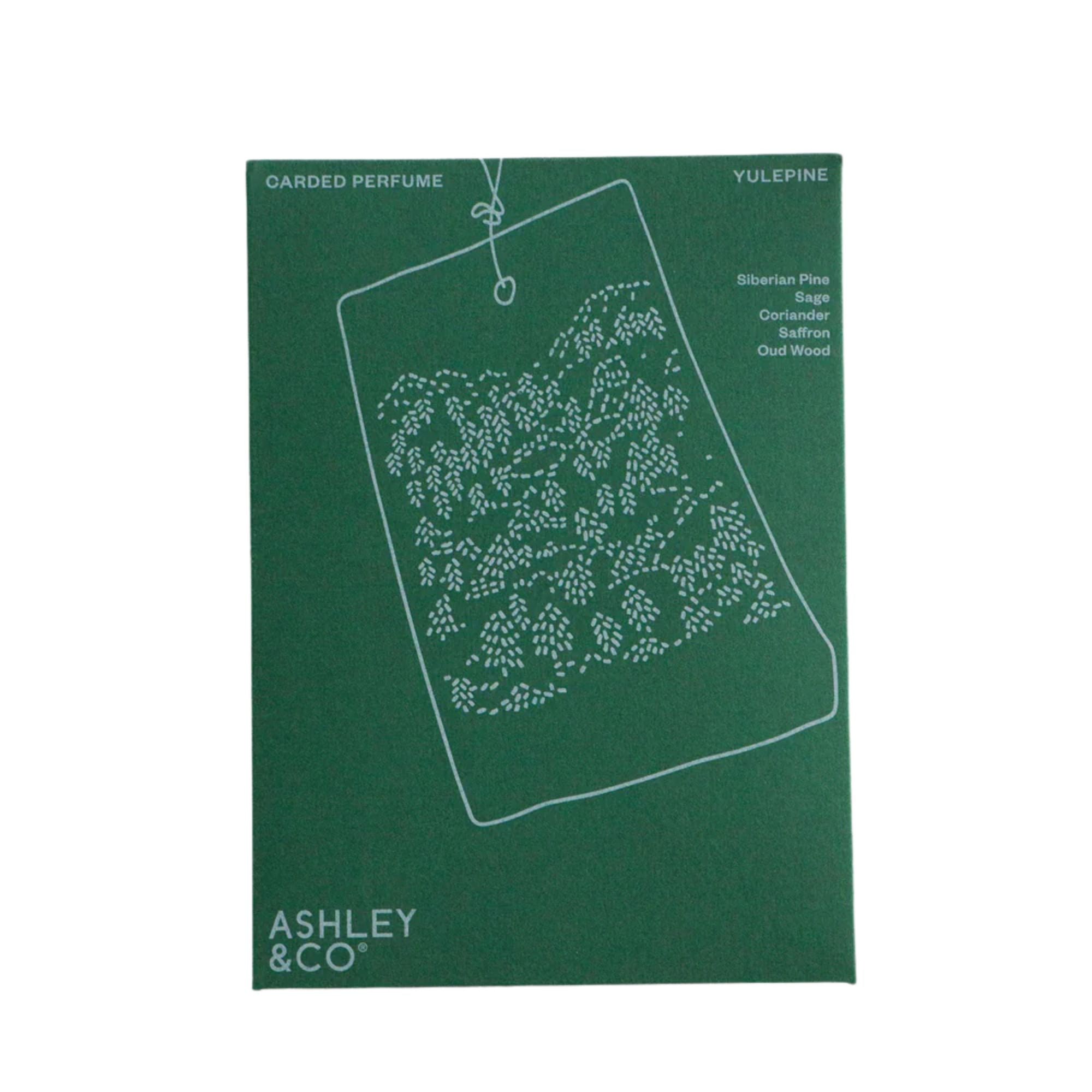 The Carded Perfume Scented Tag from Ashley & Co is portable and purposeful, packing a fragrant punch of scent no matter where you place it. Slide it into your car, slip it into drawers, or hang it discretely in your wardrobe. At every turn, Carded Perfume gently releases Yulepine’s forest-forward fragrance. Atmospheric and poetic, let the grounding notes of Siberian pine, sage, coriander, saffron and oud wood surround you.