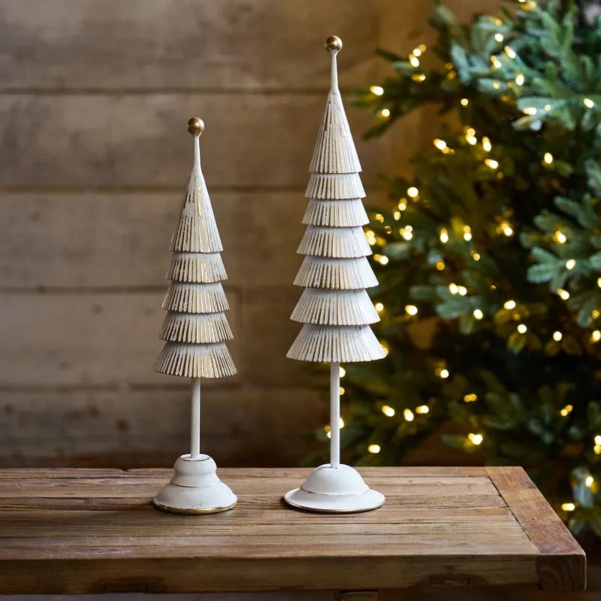 This gorgeous Aspen Table Tree is the perfect addition to your festive display. Painted in vintage white with flecks of gold, it brings a touch of elegance to your mantle, sideboard, or table. Available in two sizes.