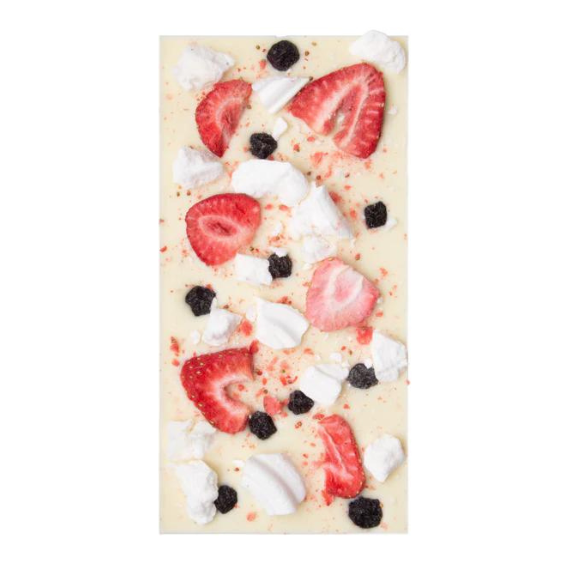 This Pavlova White Chocolate bar from Bennetts Chocolatier is hand decorated with freeze dried berries and meringue for the perfect twist on the ultimate Christmas Dessert.