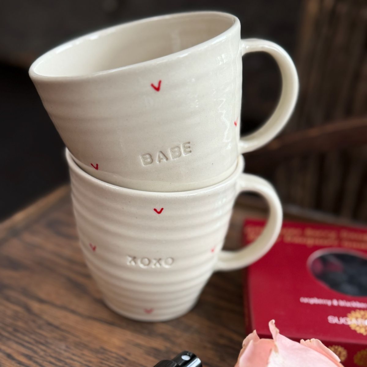 Beautifully handcrafted by Brogan Handmade Pottery, these locally made mugs are thrown on the wheel, then carefully hand-painted and stamped with “XOXO,” making every piece truly one of a kind. Thoughtful, personal, and full of character, they make a meaningful gift for someone special this Valentine’s Day (or any day).