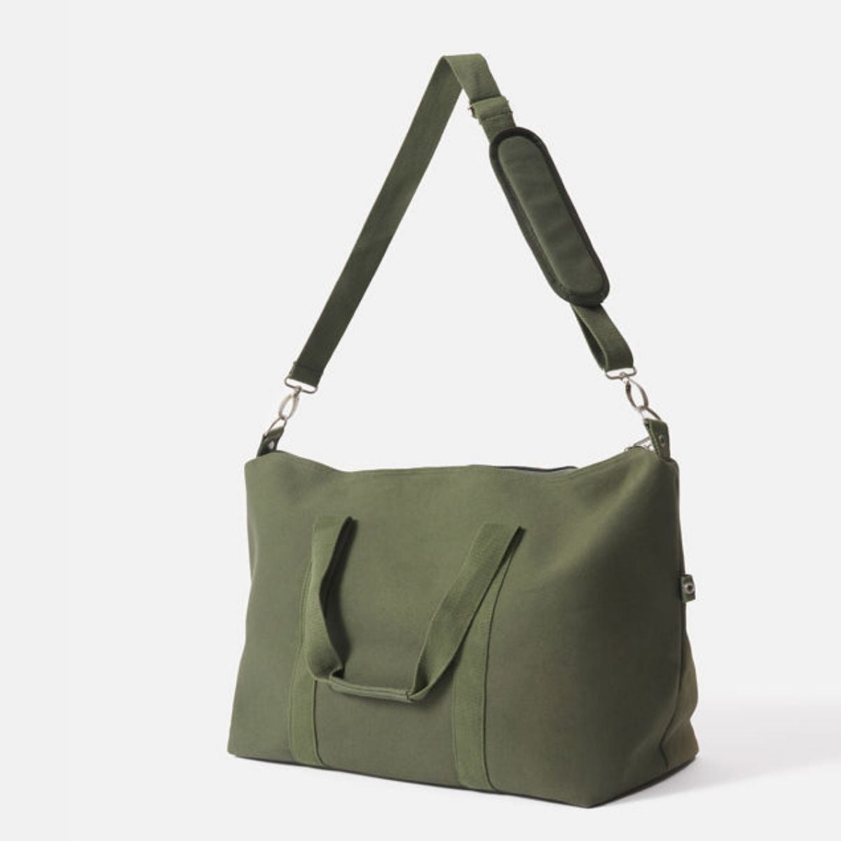 The Canvas Weekender Bag in olive is a simple, practical design ideal for overnight getaways. The dimensions allow the bag to be used as carry-on luggage. Features an internal slip pocket with zip closure, ideal for safely storing your keys and wallet.