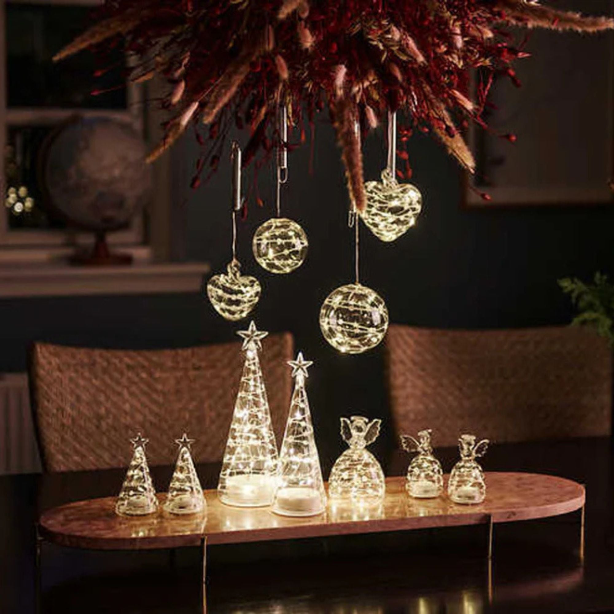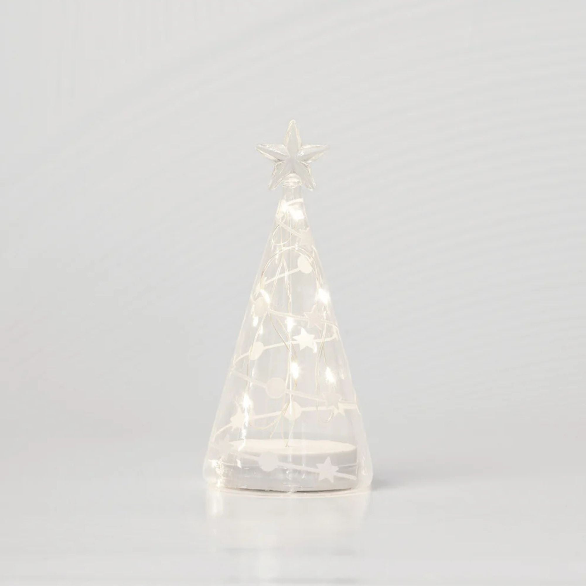 The Glass Angels and Trees with stars and spots are one of the new items in the Noel range by Stellar HausOur cone shaped glass twinkle trees are available and often bought as sets, in three sizes.Warm white seed lights