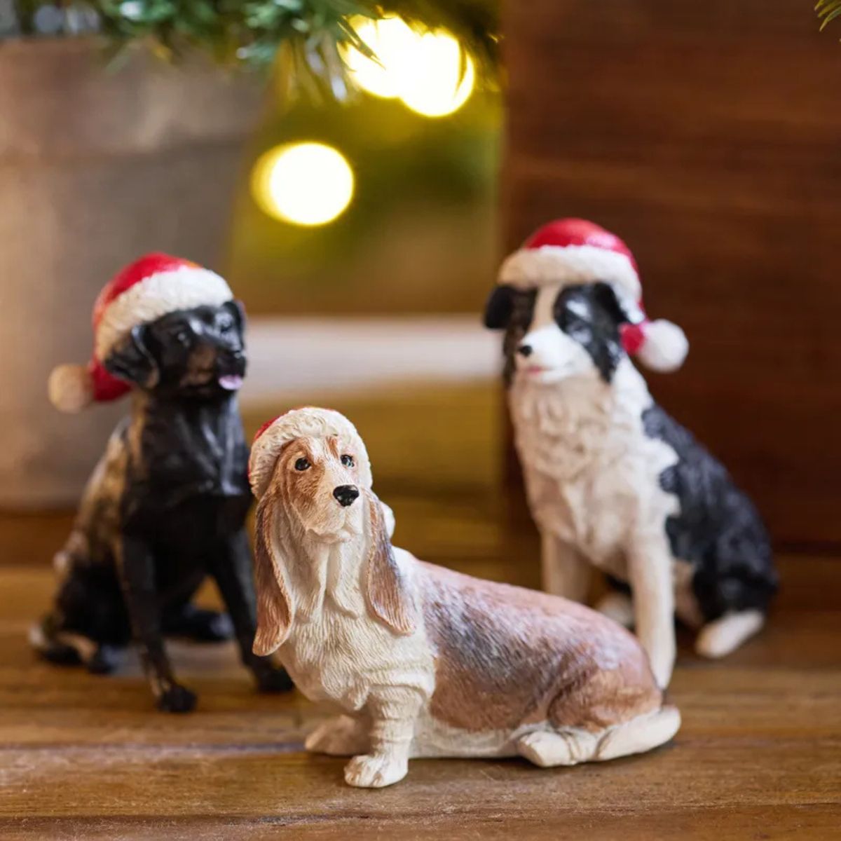 This little Dachshund, complete with a jolly Santa hat, is ready to bring festive cheer to your Christmas décor! Its adorable stance and merry look make it the perfect playful addition to your holiday home décor.A perfect addition for dog lovers this festive season!