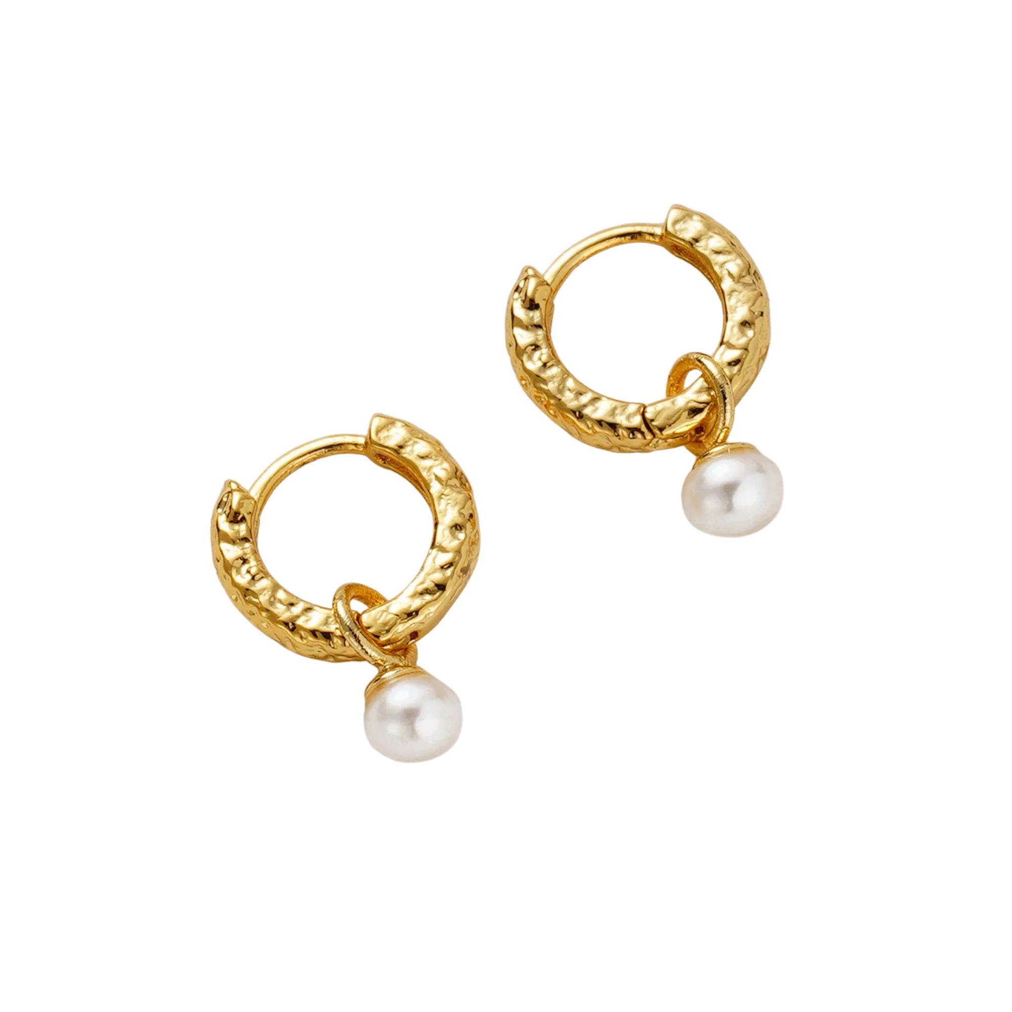 The Emery Huggie combines texture and elegance in one timeless design. Featuring a gold-toned, hammered-style hoop paired with a removable freshwater pearl charm, this earring offers versatility to suit any occasion. Wear it with the pearl for a refined, feminine look or on its own as a chic everyday hoop.