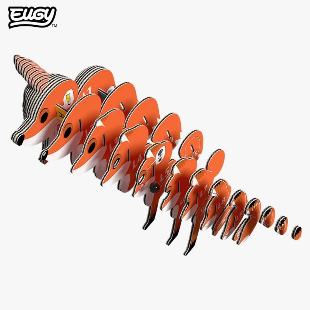 Our products conform 100% to international safety standards (EN71-1,2,3 and CPSIA). A EUGY pack contains 7 flat cards with individually numbered pieces, all ready for you to assemble.