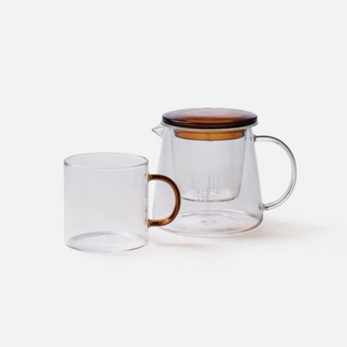 Enjoy a nice hot beverage with this clear mug with amber handle.