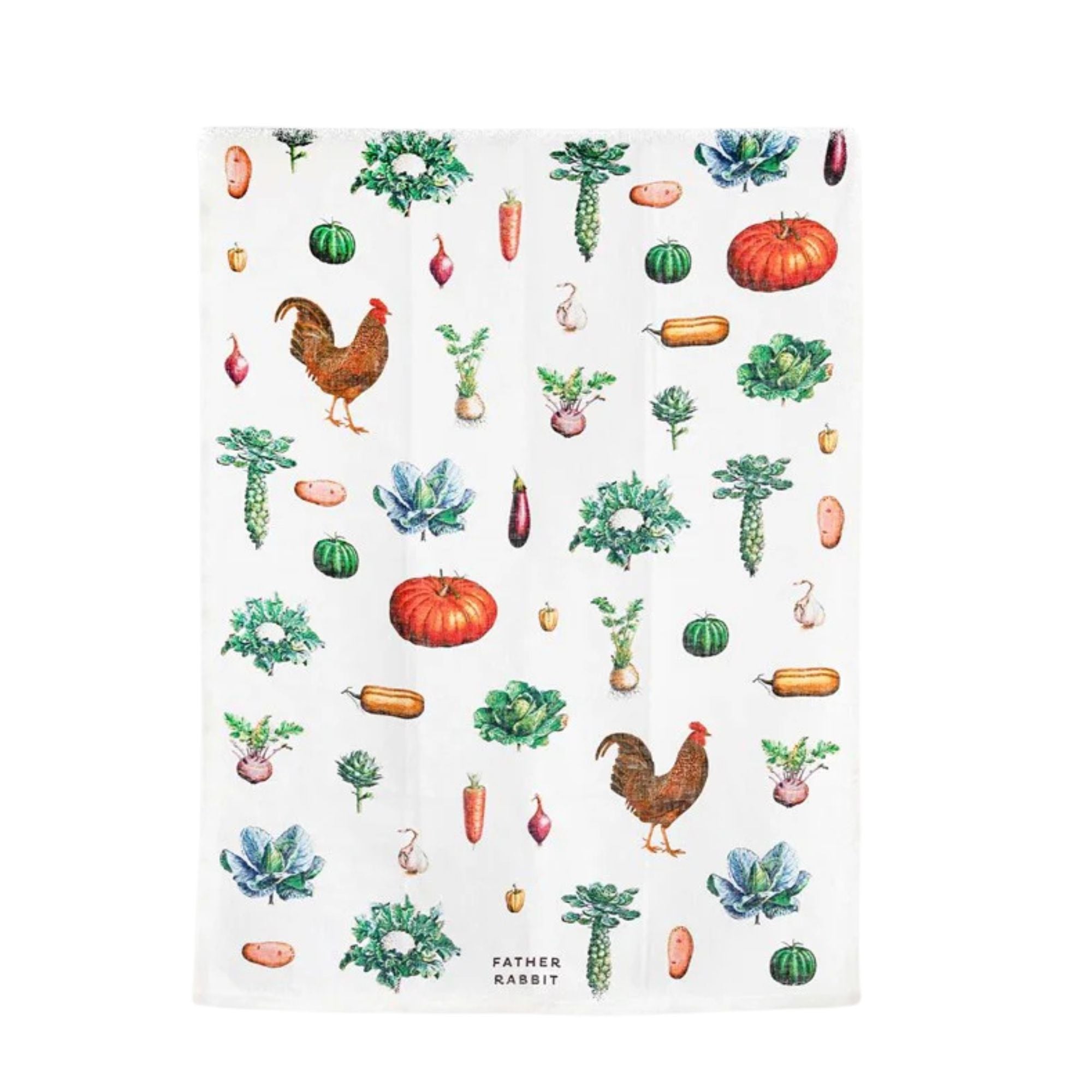 Father Rabbit - Tea Towel - Vintage Vegetables