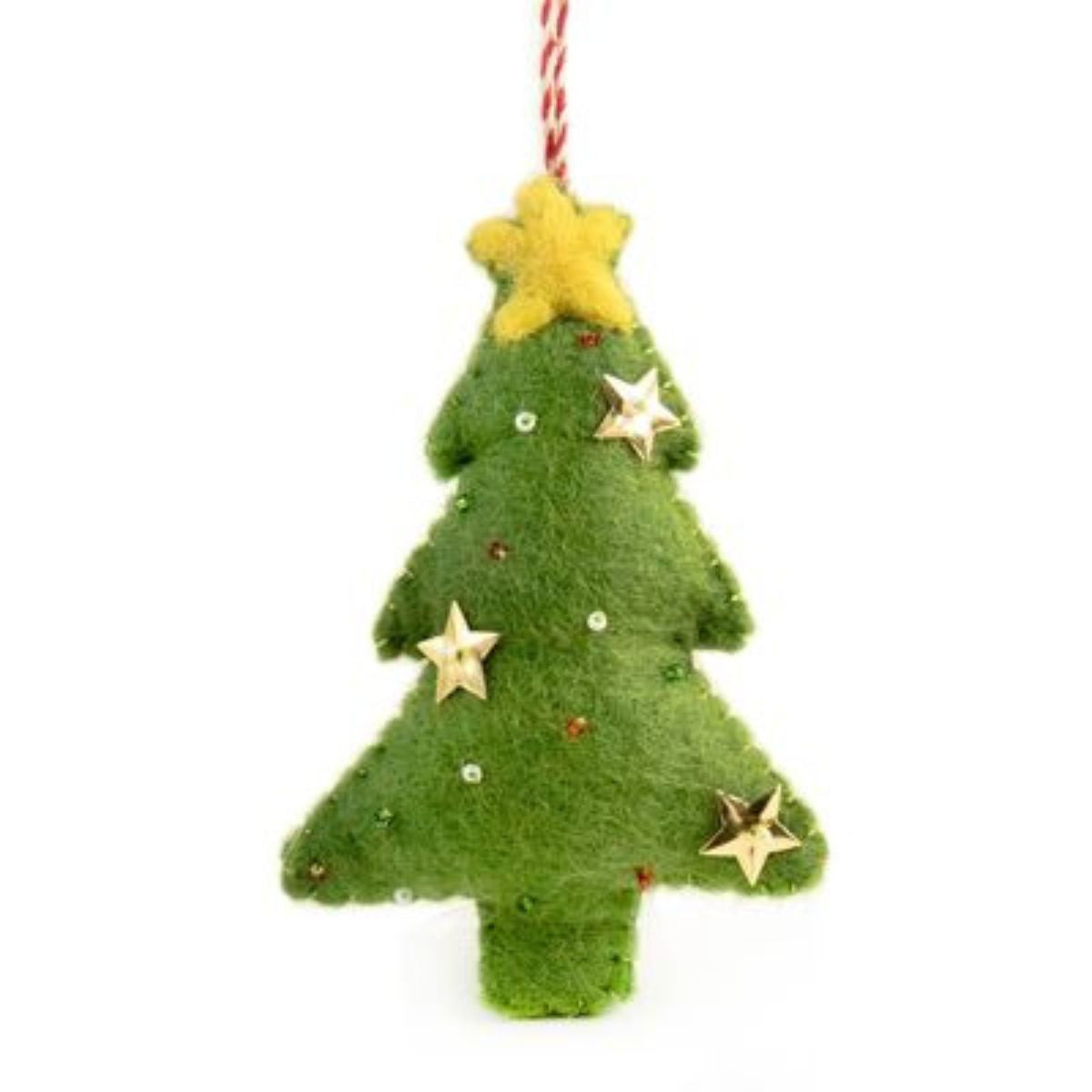 Vevoke hand made tree decoration made in Nepal from 100% NZ wool felt Comes with red and white string for hanging A natural, eco-friendly Christmas decoration A portion of every sale goes to the Nepal Children's Education Fund