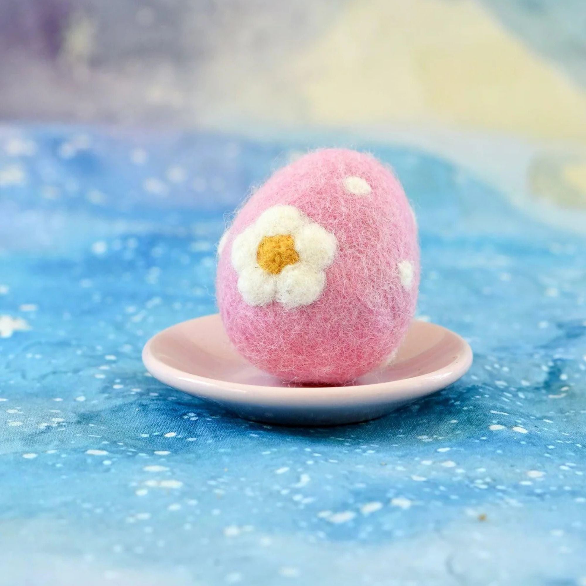 Hop into Easter with this felt pink floral egg! Embark on a whimsical journey with the playful dance of dots that adorns our felt egg. The soft, cozy texture of the felt make these eggs a delightful addition to your Easter basket.