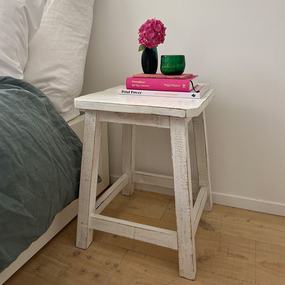 Florence is a stunning Kitchen & Accessories collection handmade in Indonesia from Parnell & Co. It brings a French farmhouse vibe to your home. This white stool looks beautiful as a bedside or coffee table.