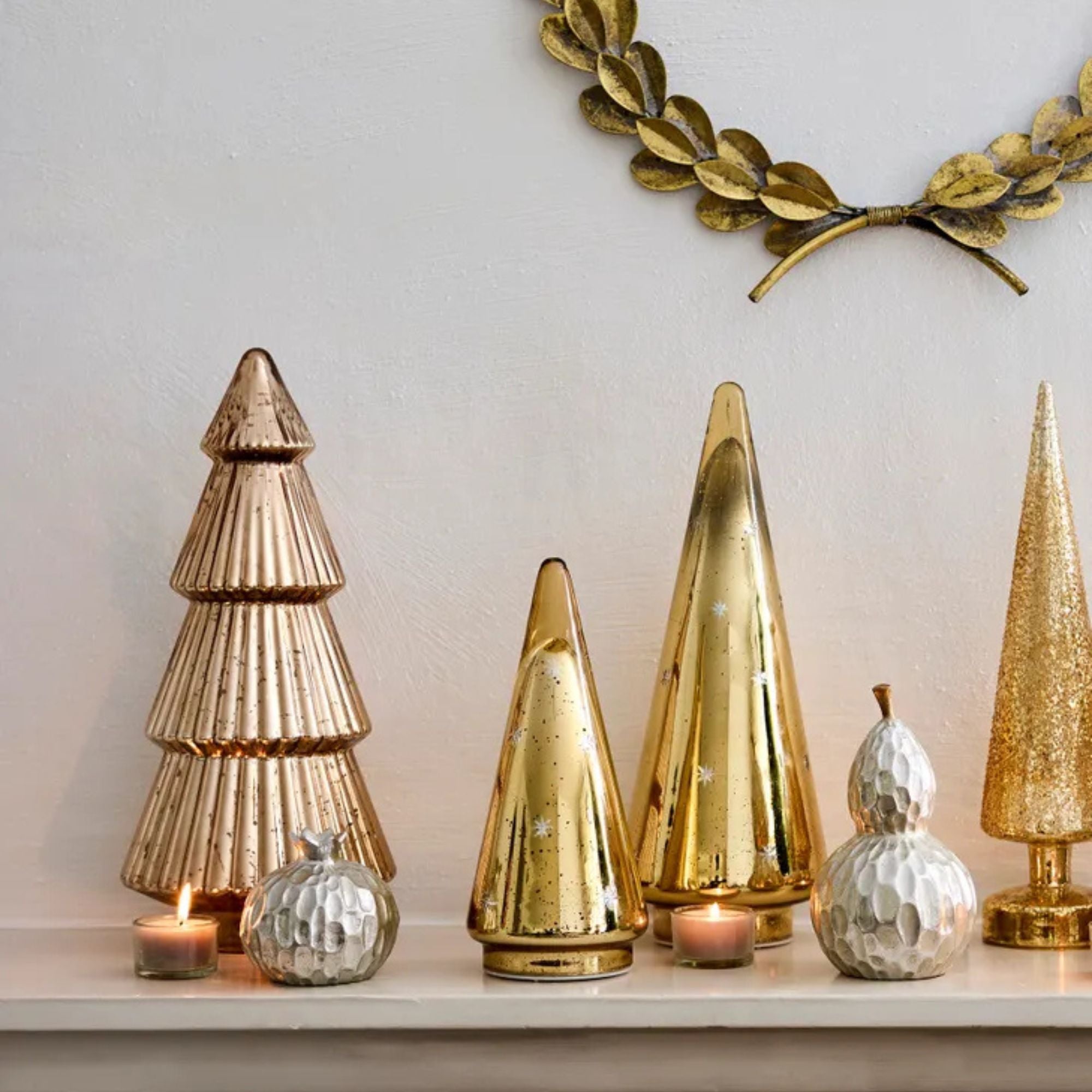 This beautiful antique glass Christmas tree features LED lights and creates a beatuiful focal point for festive ambiance. Use as a centrepiece or displayed on a mantelpiece.