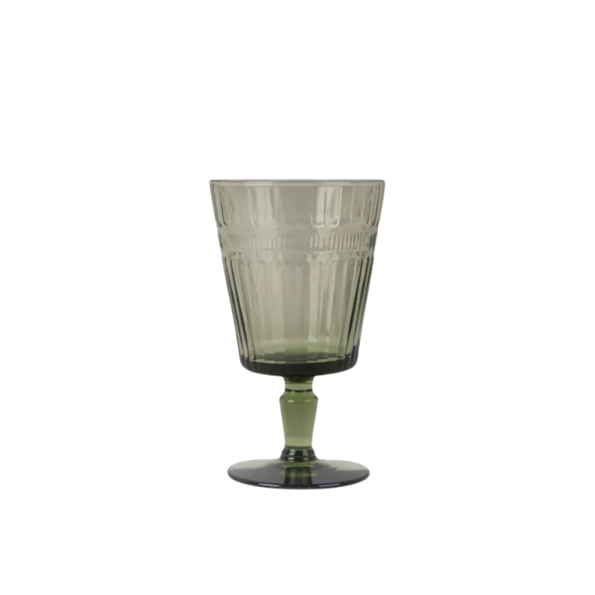The Glow Goblet from French Country Collection in Olive Green is the perfect addition to your summer table. Crafted from high quality pressed glass it blends everyday functionality with vintage character.