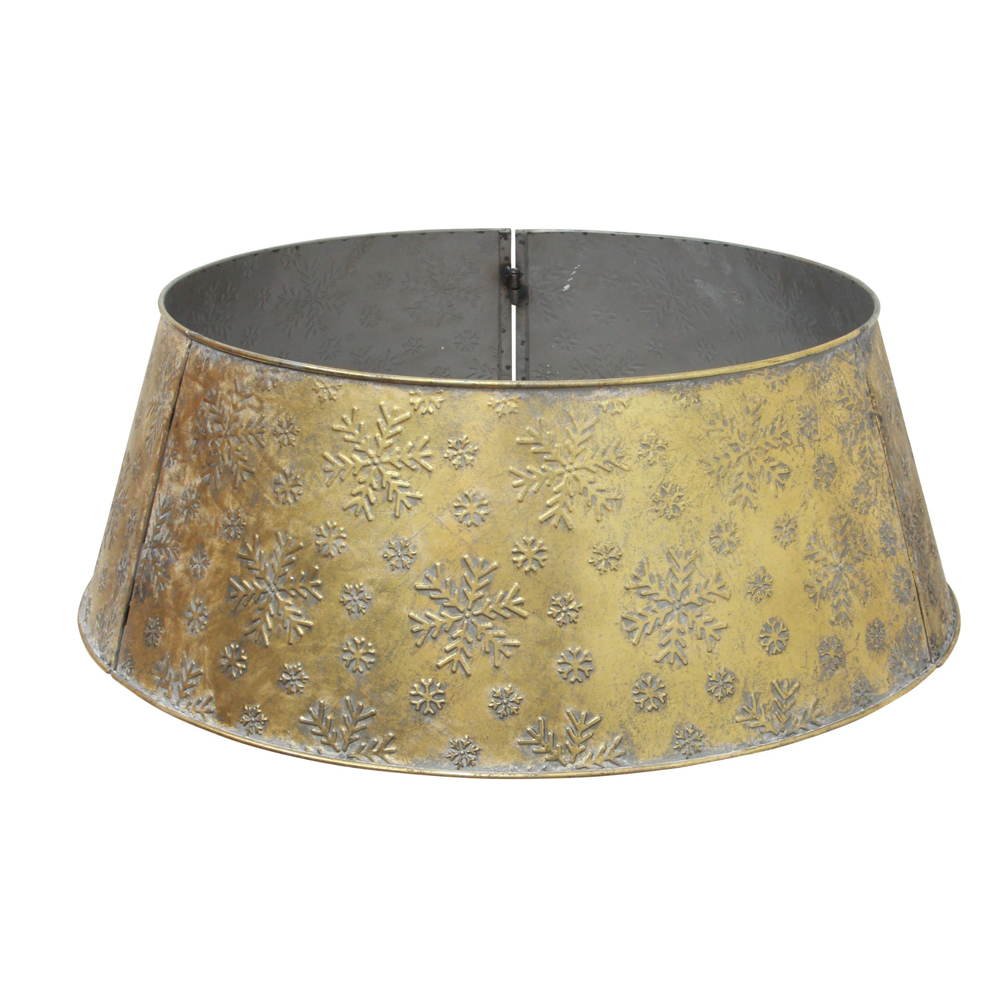 This Antique Snowflake Tree Skirt in Gold features embossed detailing and is a wonderful way to hide the Stand or base of your Christmas tree.