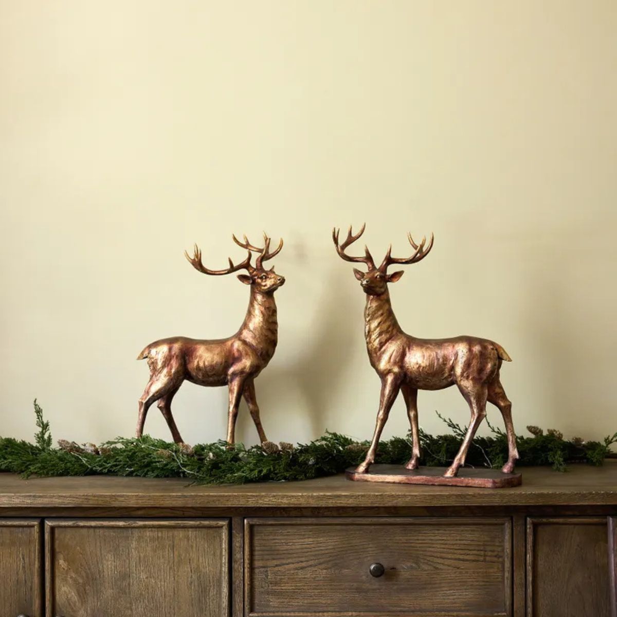 Elevate your décor with the Grande Stag on Base Right, a striking decor piece that showcases a majestic stag poised with elegance. Crafted with lifelike detailing and a timeless design, it brings depth and rustic sophistication to any mantelpiece or shelf. Its intricate craftsmanship and classic stance make it a captivating statement piece, perfectly complementing the left-facing version for a harmonious display during the festive season and beyond, making it a versatile addition all year round.