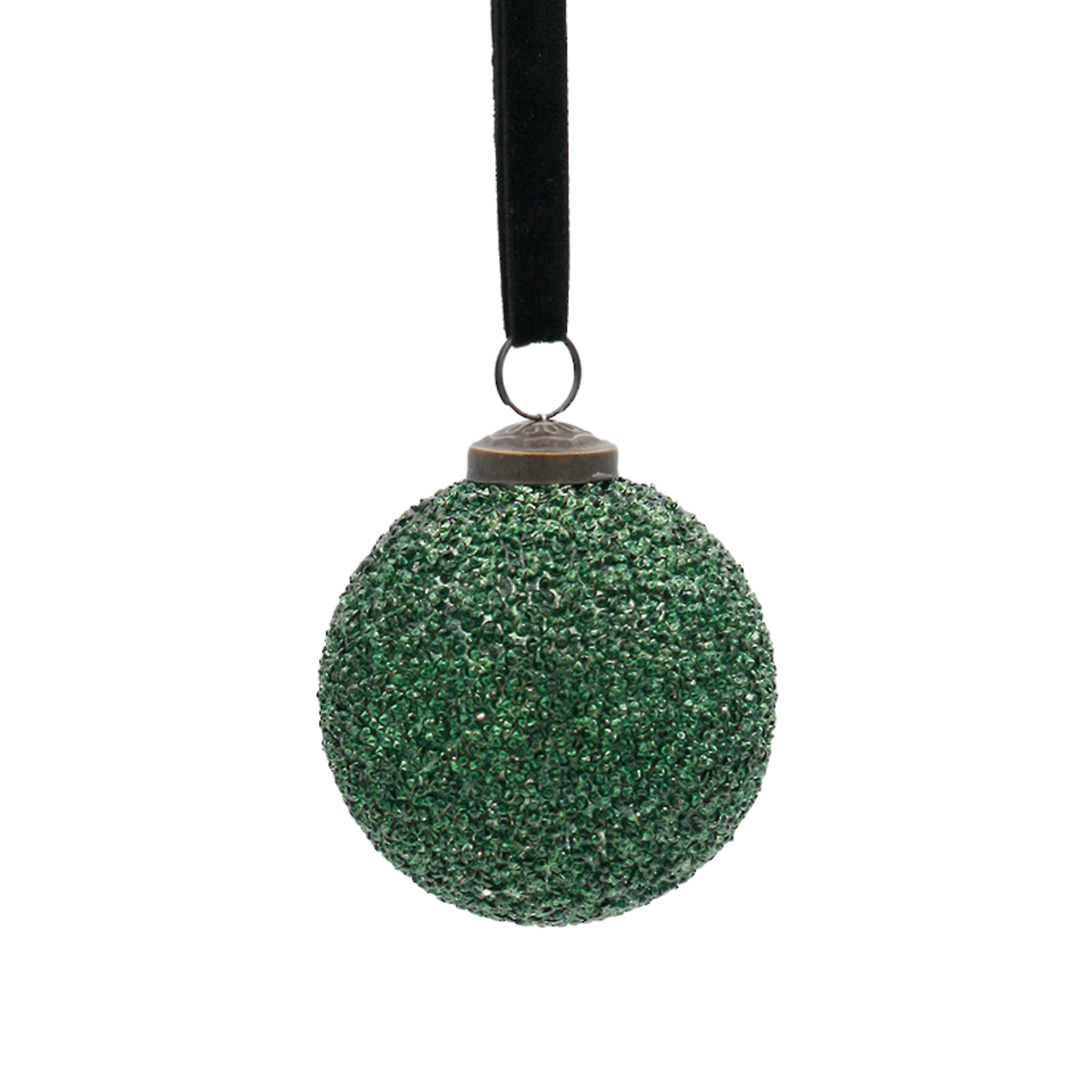 This textured green glass bauble is the perfect addition to your tree for a bit of texture!