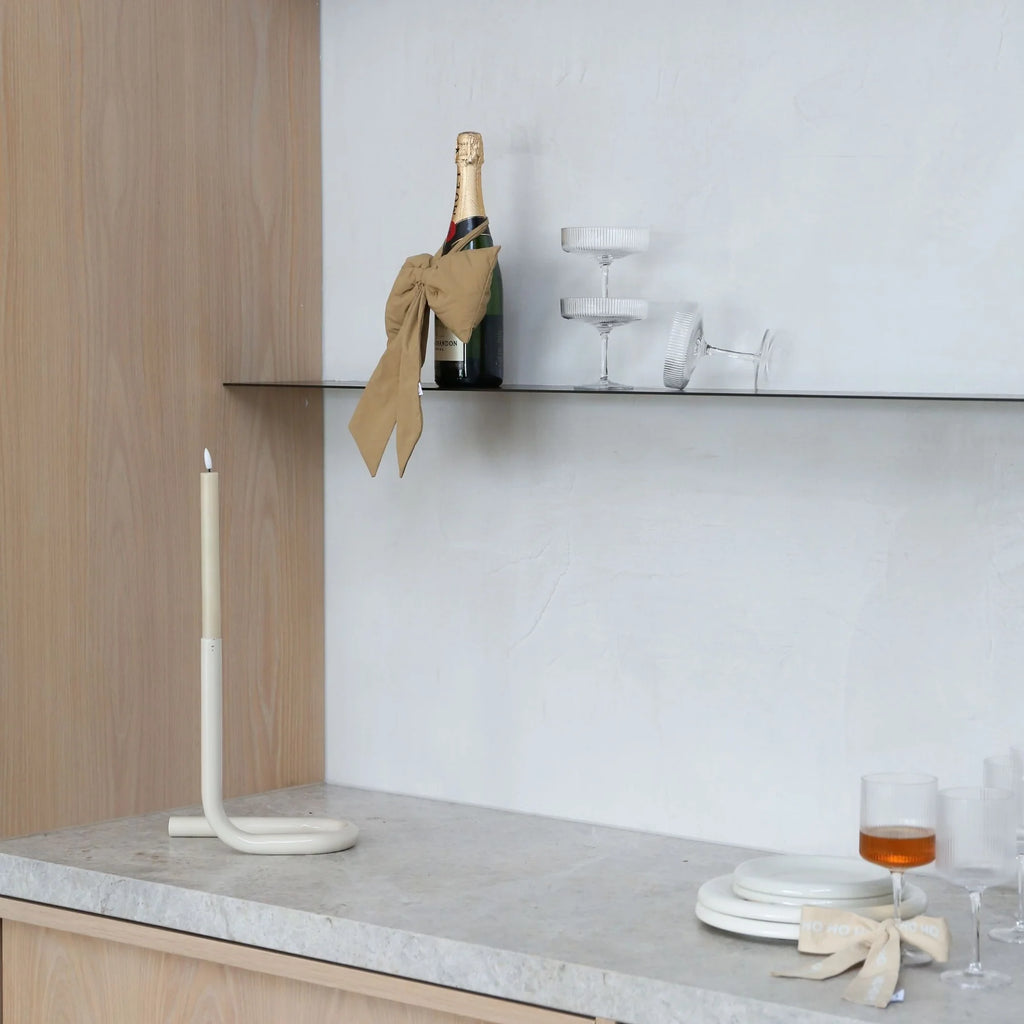The Christmas Door Bow is made from structured fabric and padded for volume at the top, giving it a full, shaped form that settles in easily and stays put all season. Its long tails fall naturally, adding height and softness to whatever it’s tied to: cupboard handles, door panels, hallway hooks.