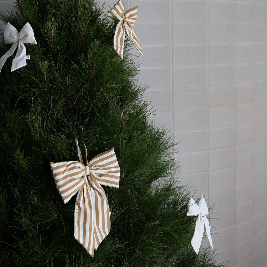 Hanging Door Bow - Medium - Stripe Cream/Fern