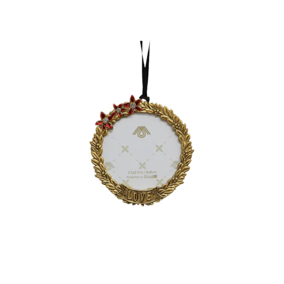 The Hanging Round Frame is a sweet addition to any Christmas tree. Stamped with the word "Love" this delicate hanging picture frame really makes a wonderful gift for a loved one this Christmas.