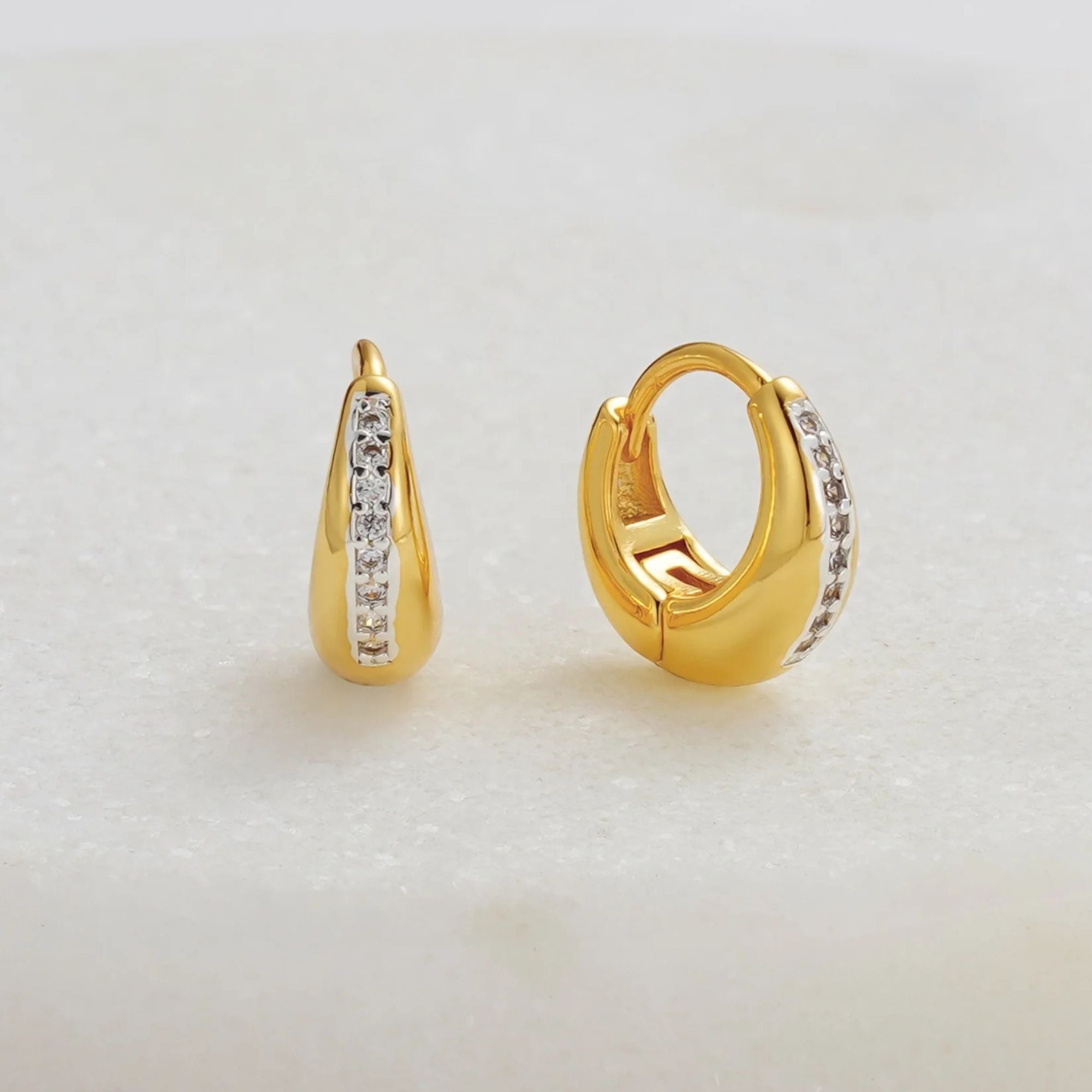 The Zafino Hayley Huggie combines a sleek gold silhouette with a line of sparkling crystals for effortless sophistication. Its curved design hugs the ear comfortably, making it the perfect everyday piece that transitions seamlessly from casual to occasion wear. Wear solo for a subtle shine or stack with other huggies and studs for a layered look.Designed for modern women who want effortless style, every day.