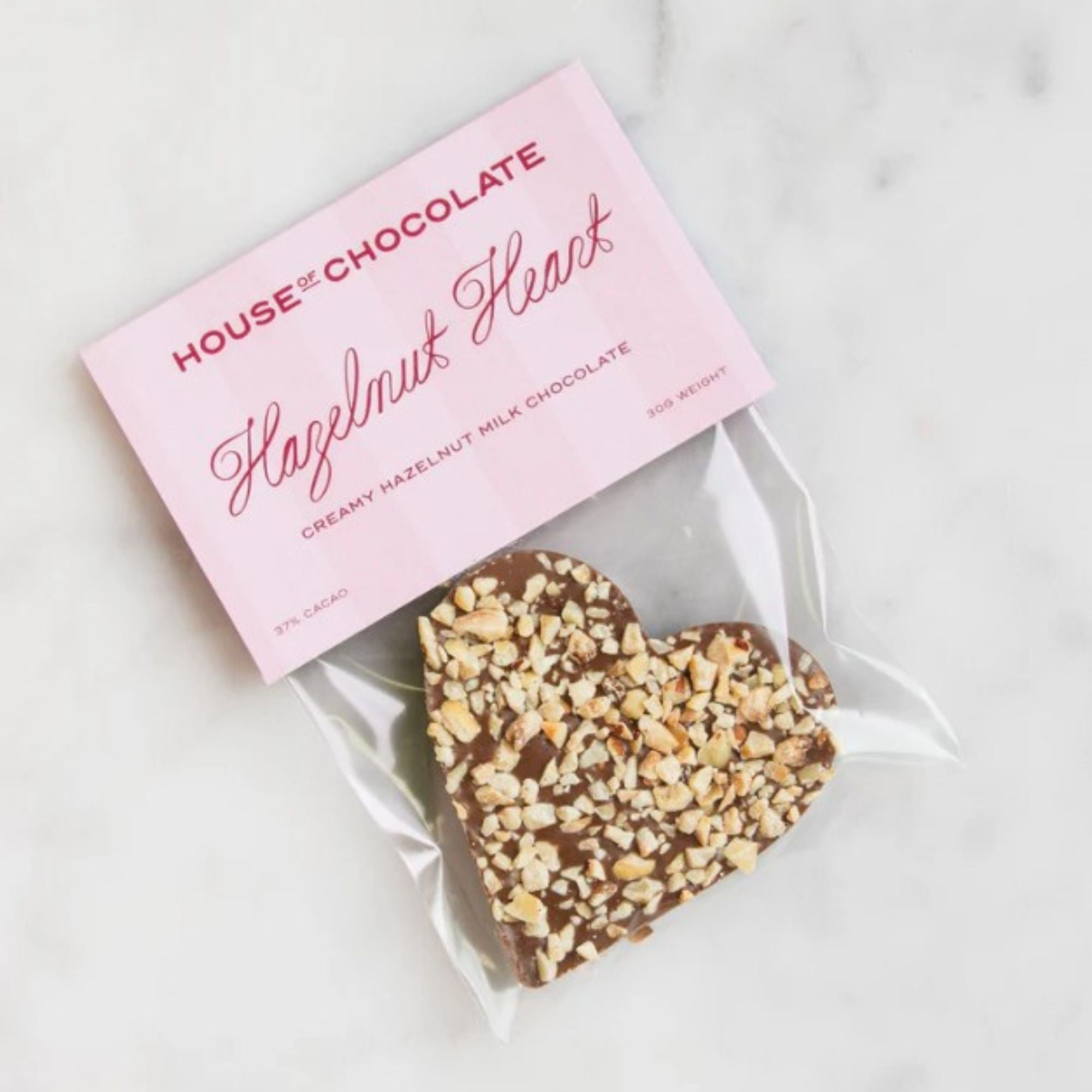 House of Chocolates sweetest sized mini heart. Crafted from creamy 37% cacao couverture milk chocolate, generously topped with Marlborough dry roasted hazelnuts.