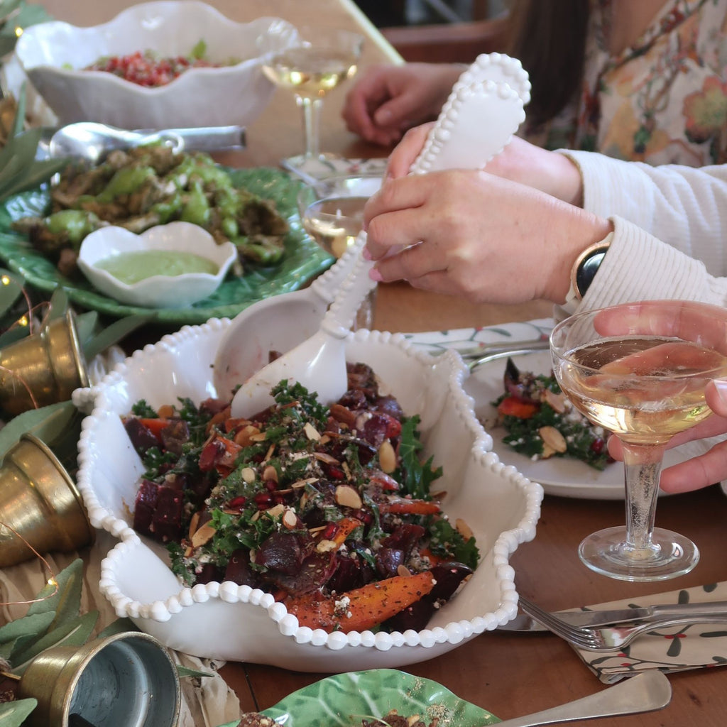 These Melamine Pearl Salad Servers are a beautiful alternative to a traditional porcelain or ceramic dish. Their stunning design and durable, lightweight, and impact resistant composition makes them the perfect addition to your kitchen range.