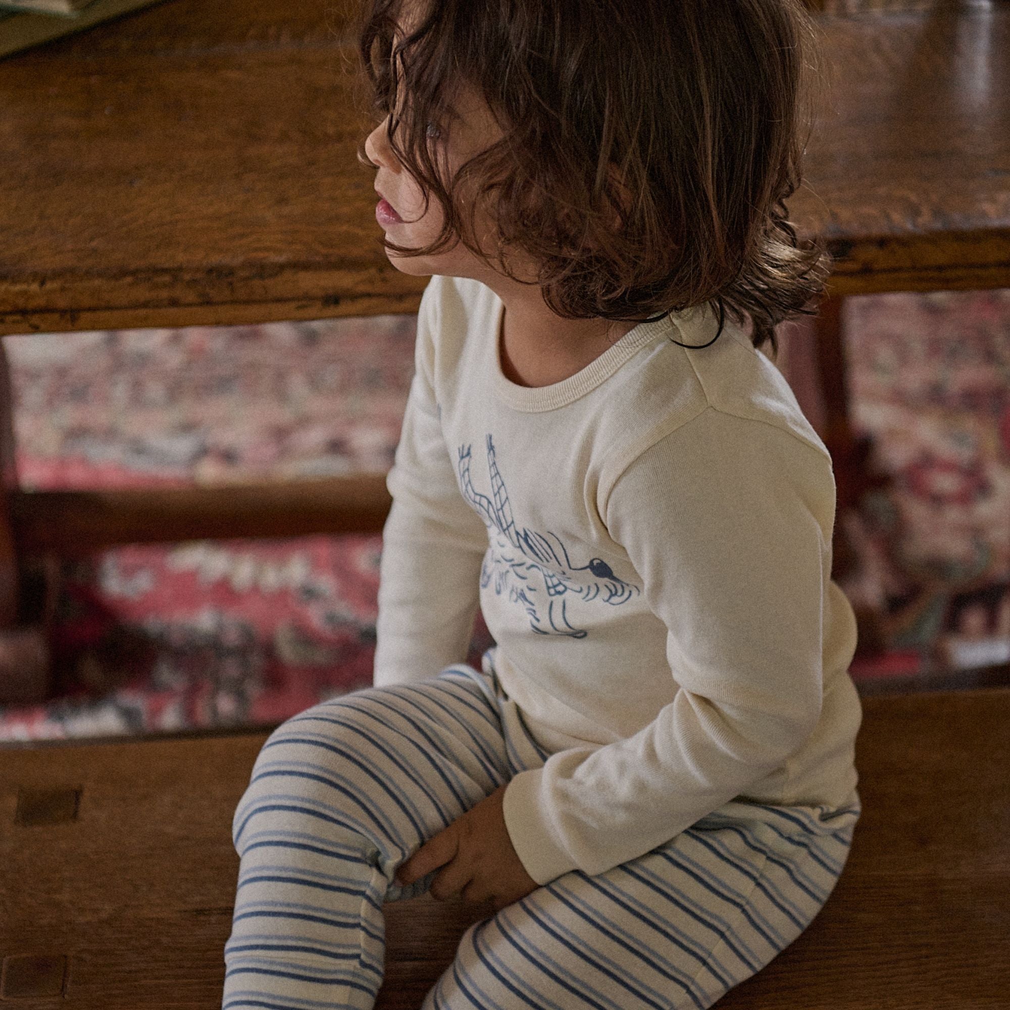Cosy and comfortable sleepwear for your little one. Our two-piece long sleeve pyjama set is perfect for those cooler nights. Made from soft organic cotton rib, with a classic crew neckline for easy dressing and soft elastic at the waist.