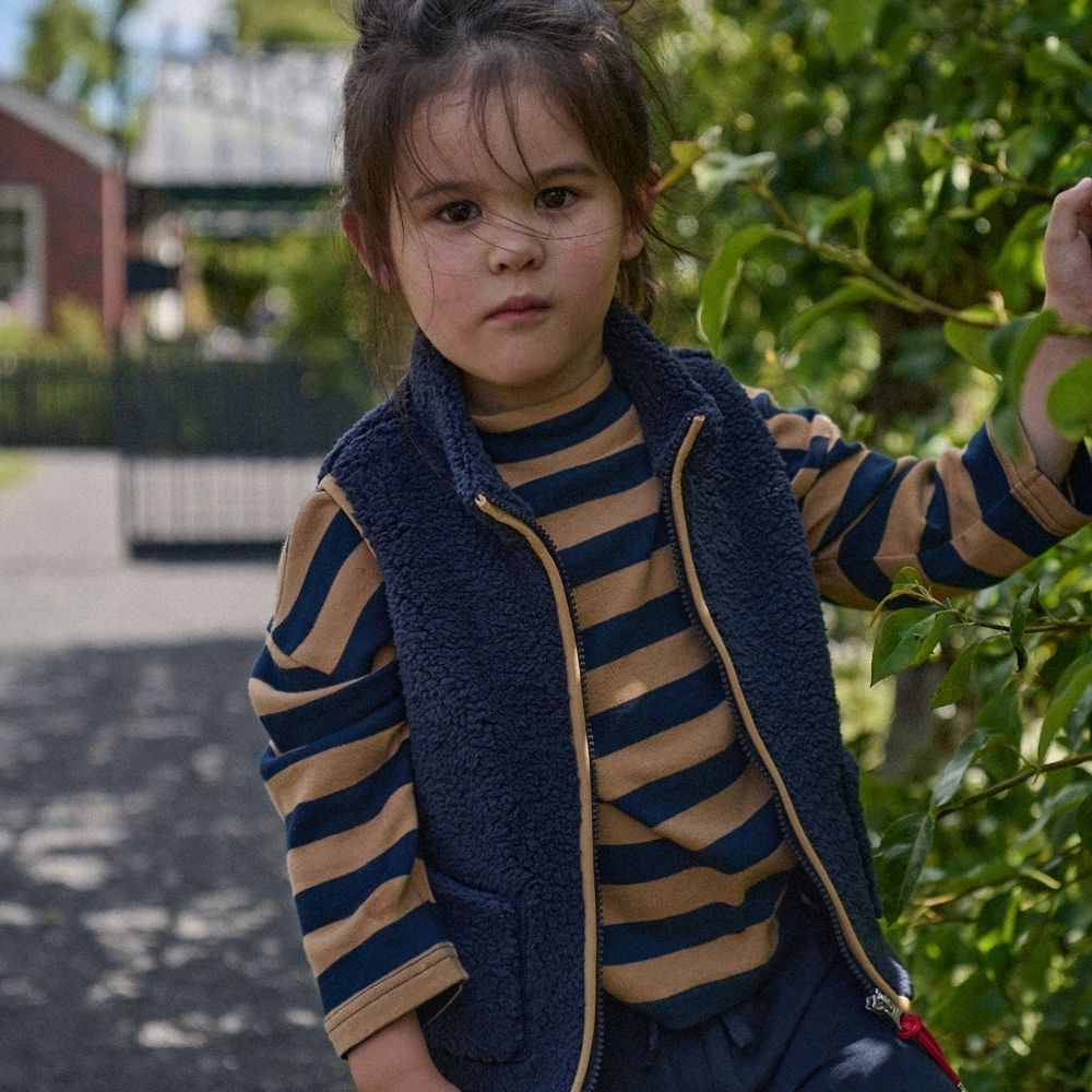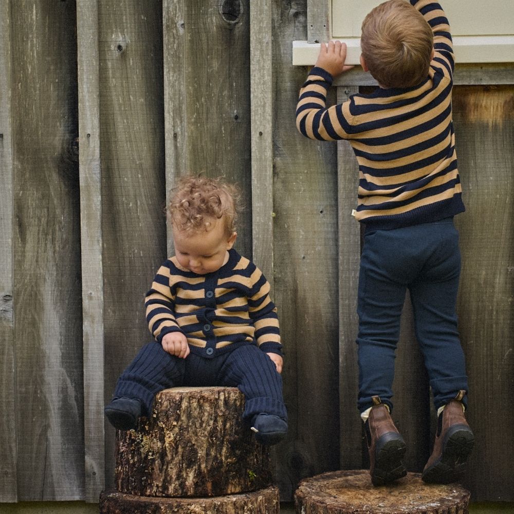Nature Baby - Merino Knit Pullover - Navy/Caramel Stripe