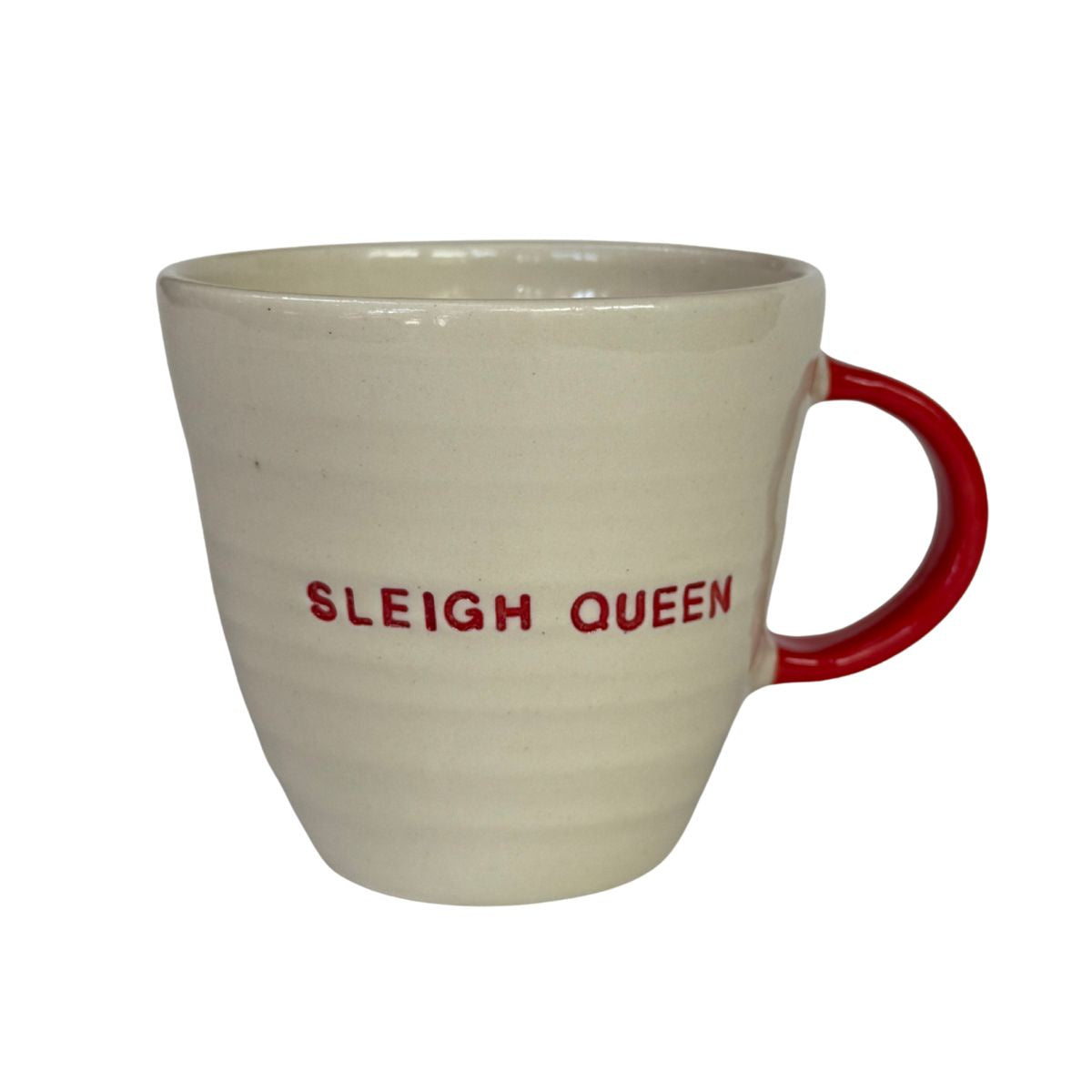 This fun "SLEIGH QUEEN" mug is the perfect end of year gift. Crafted by the extremely talented Brogan Handmade Pottery, each stunning piece is spun on a wheel, handpainted and imprinted with "SLEIGH QUEEN" making it a one-of-a-kind end of year gift!