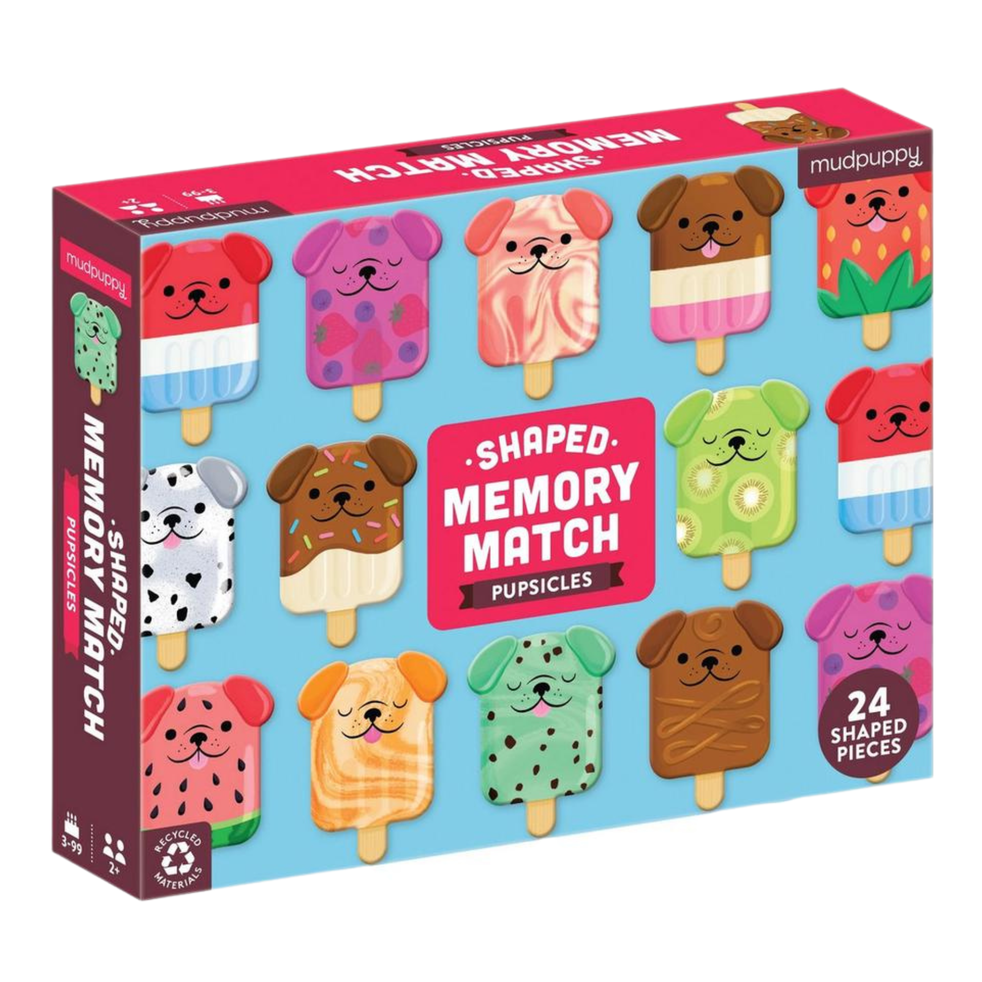 This pupsicles memory game has 24 colourful pupsicle pieces for your little one to match. Ideal for ages 3-8. Made from 90% recycled material with nontoxic, soy-based ink.