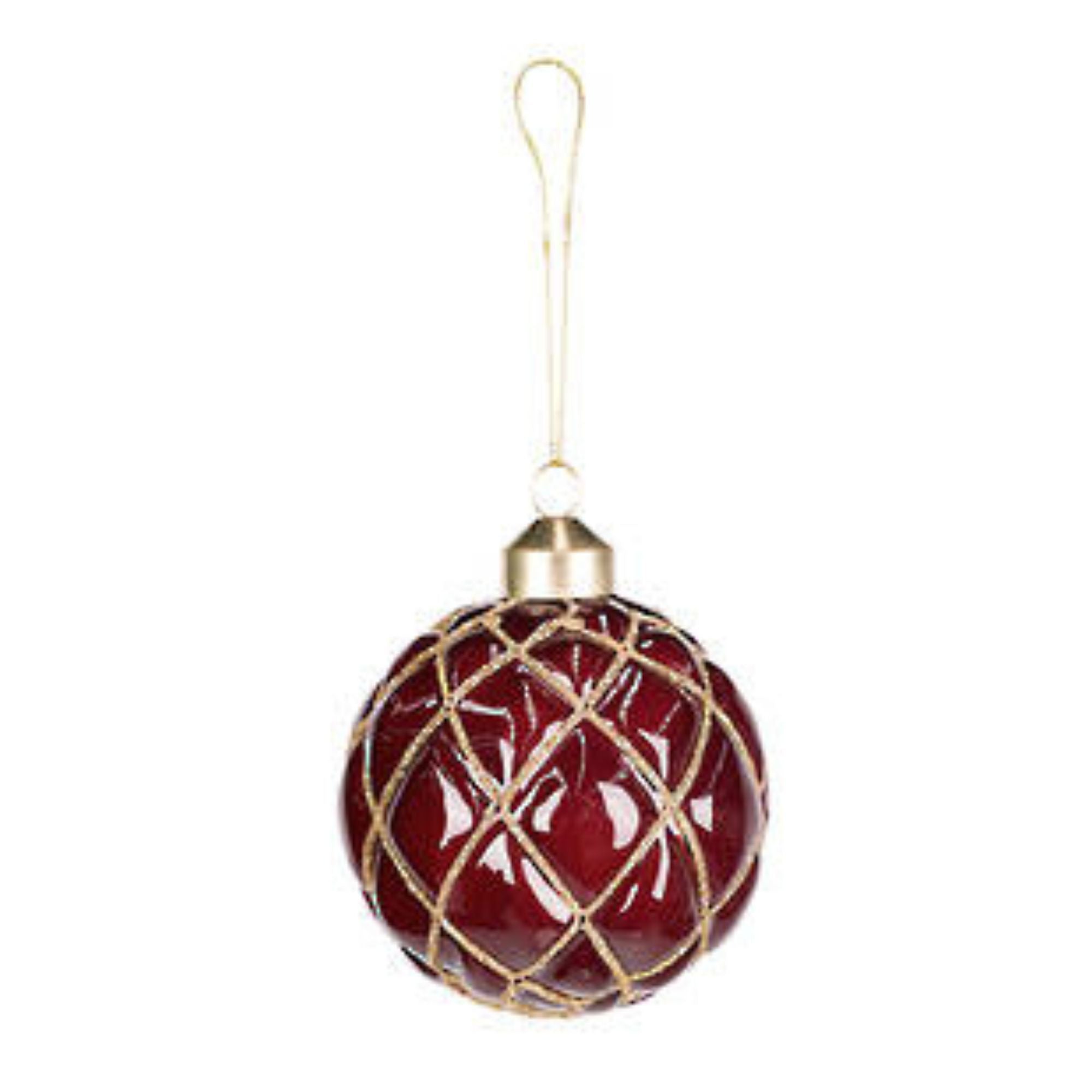 Quilted Glass Bauble Burgundy 8cm