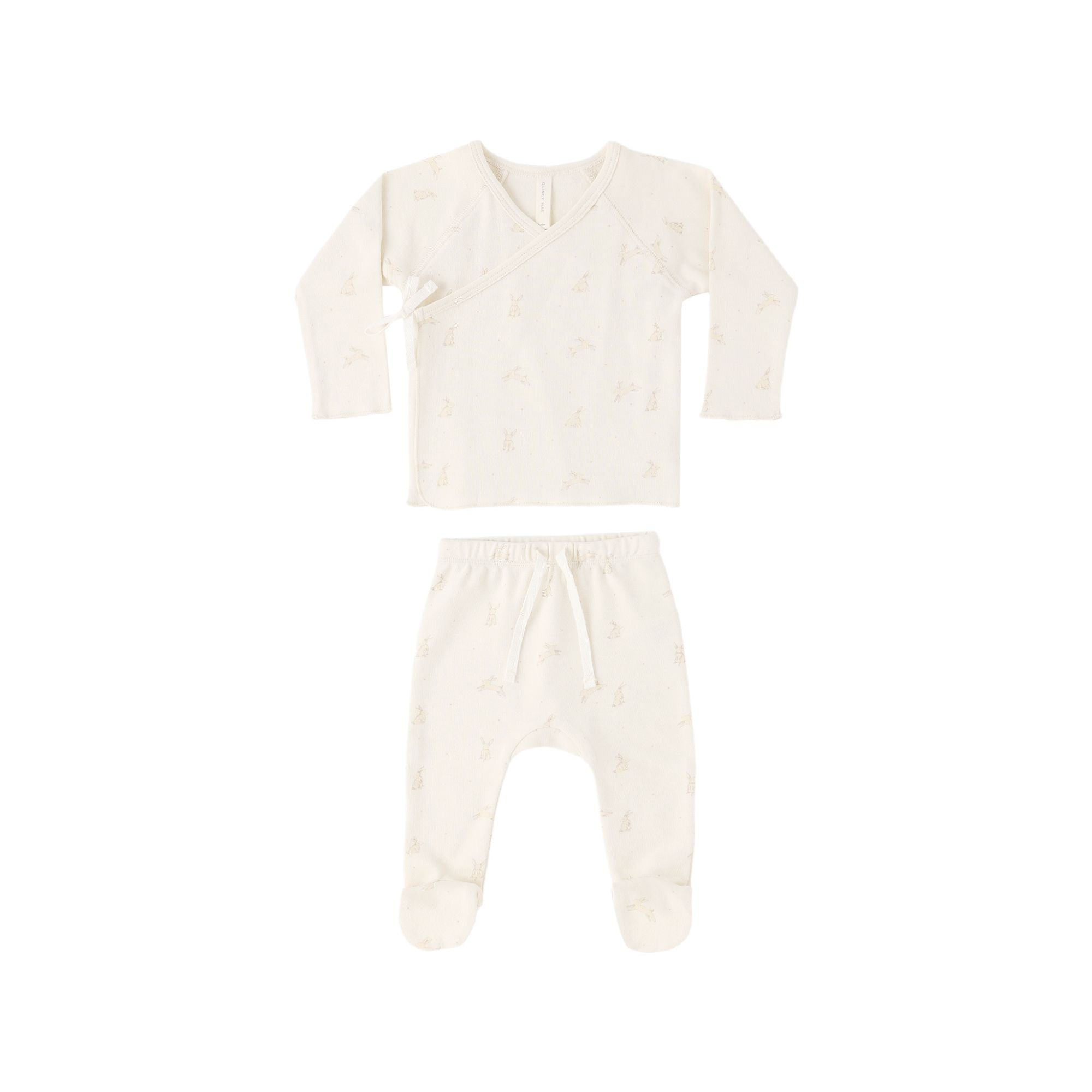 Quincy Mae - Wrap Top + Footed Pant set - Bunnies Natural