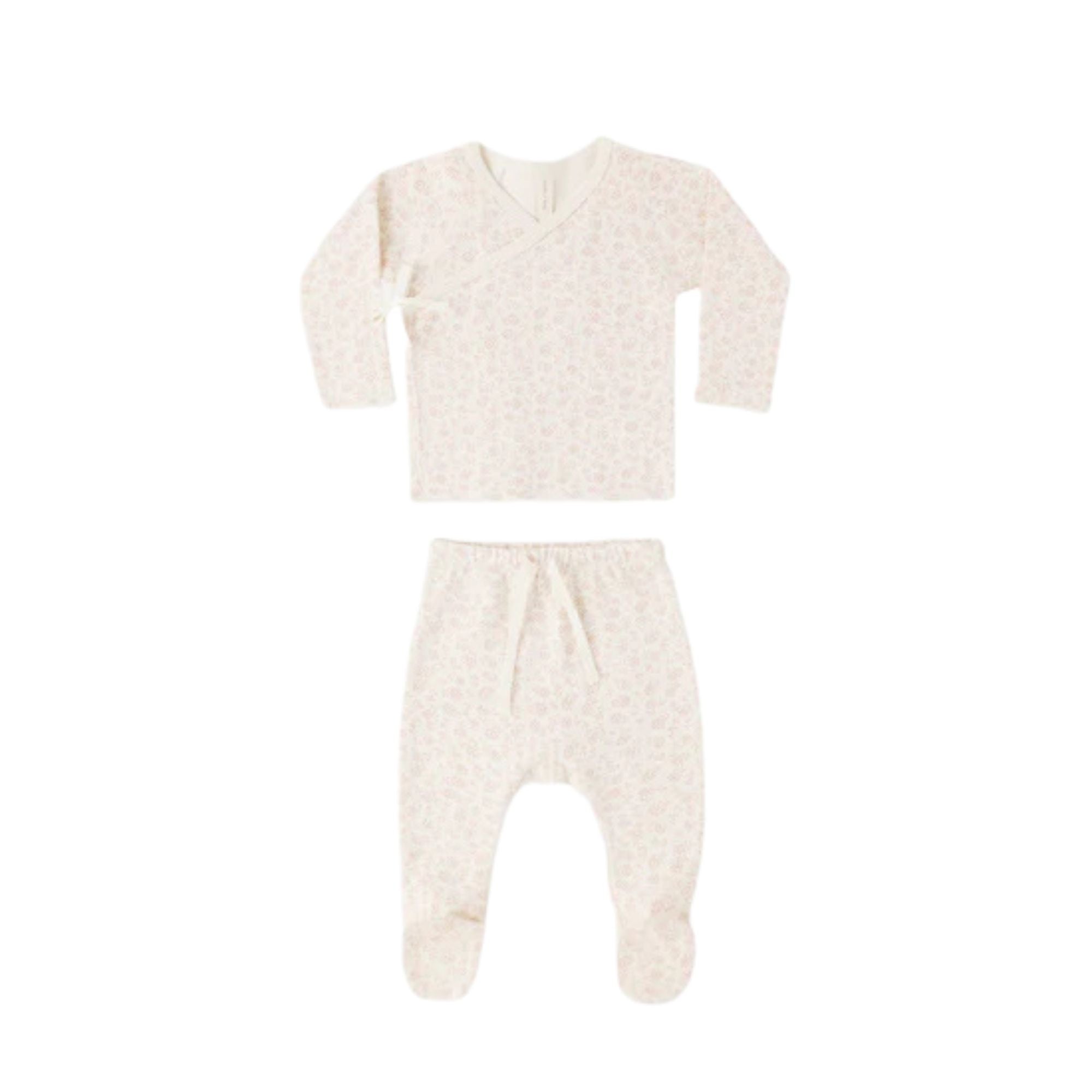 Quincy Mae - Wrap Top + Footed Pant Set - Ditsy/Ivory