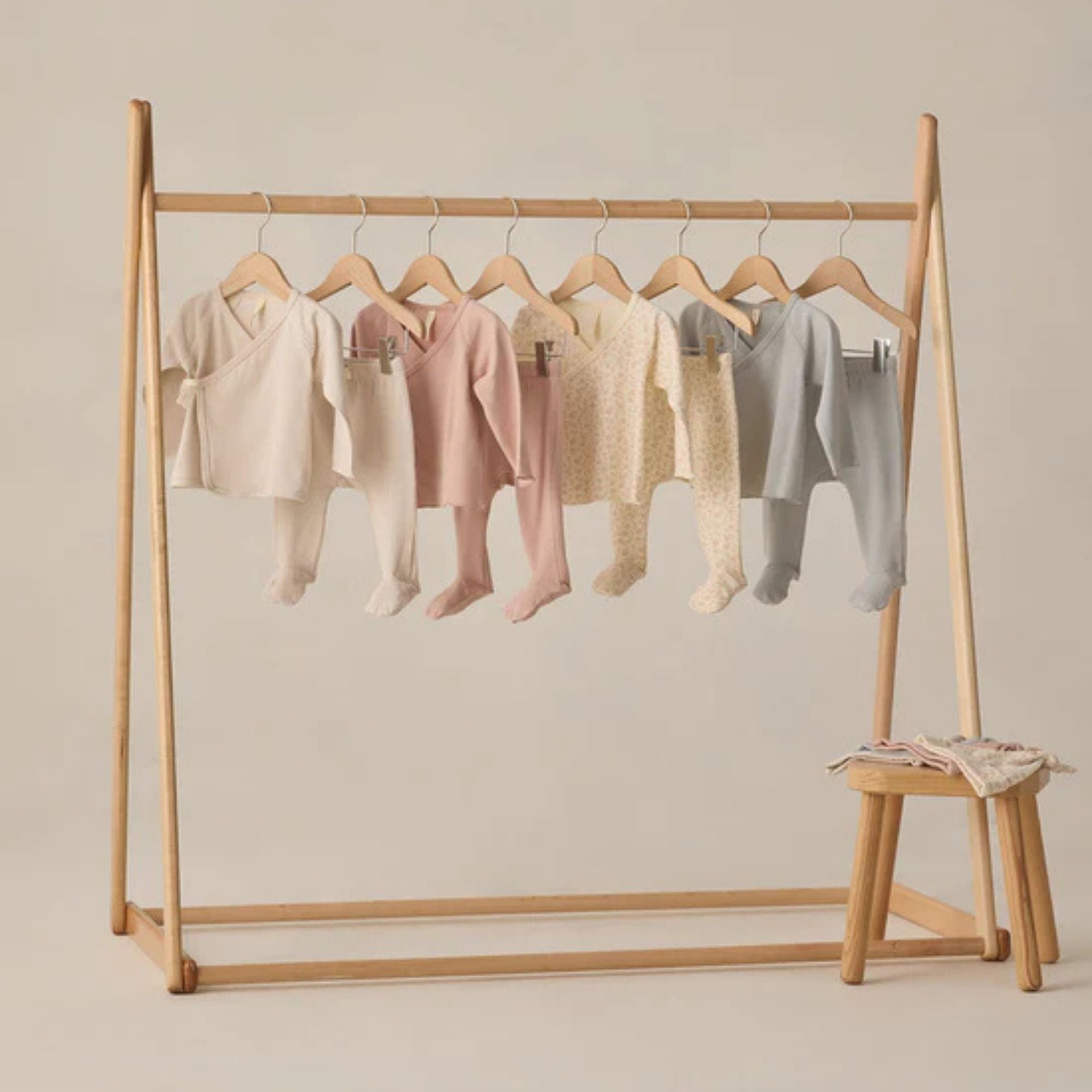 Bring home baby in this sweet Quincy Mae set. Featuring our long sleeve wrap top with inside snaps and side tie, and matching drawstring footed pants.