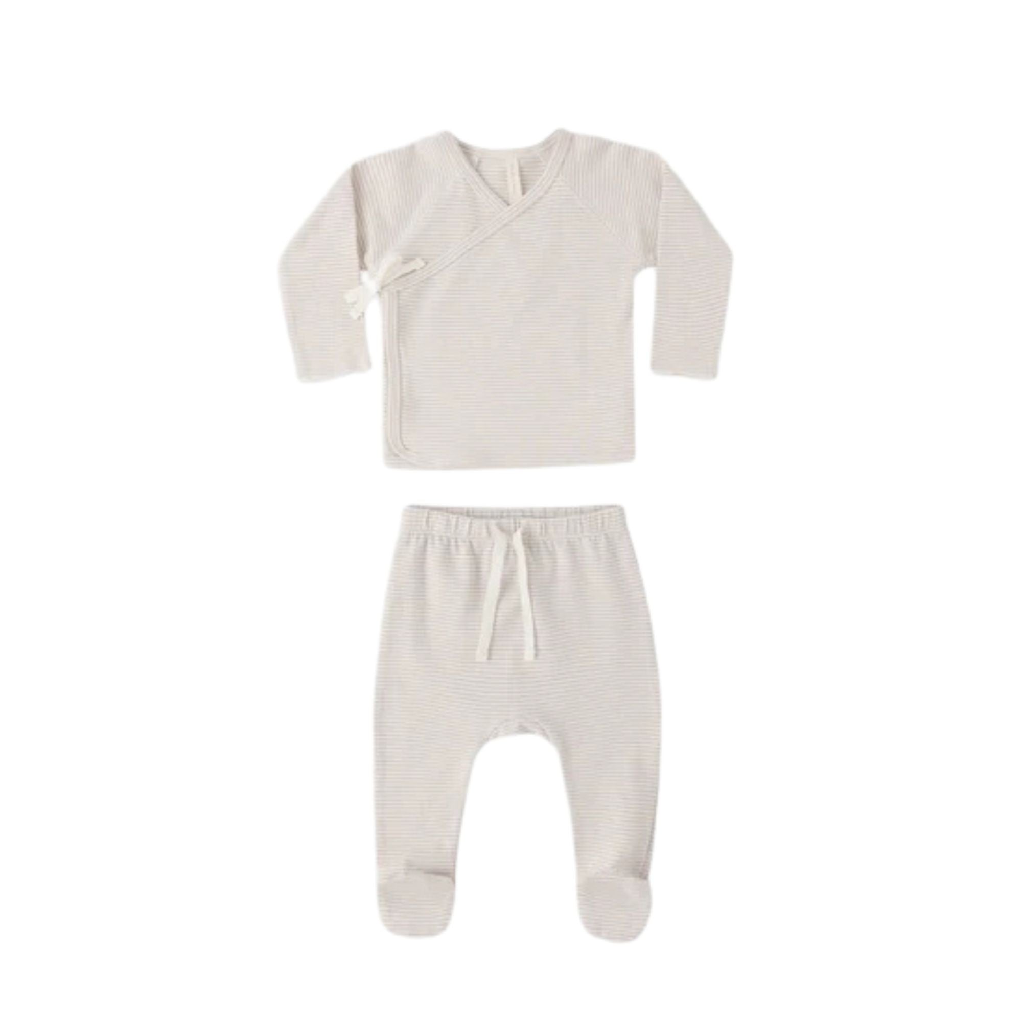 Quincy Mae - Wrap Top + Footed Pant Set - Oat Micro Stripe