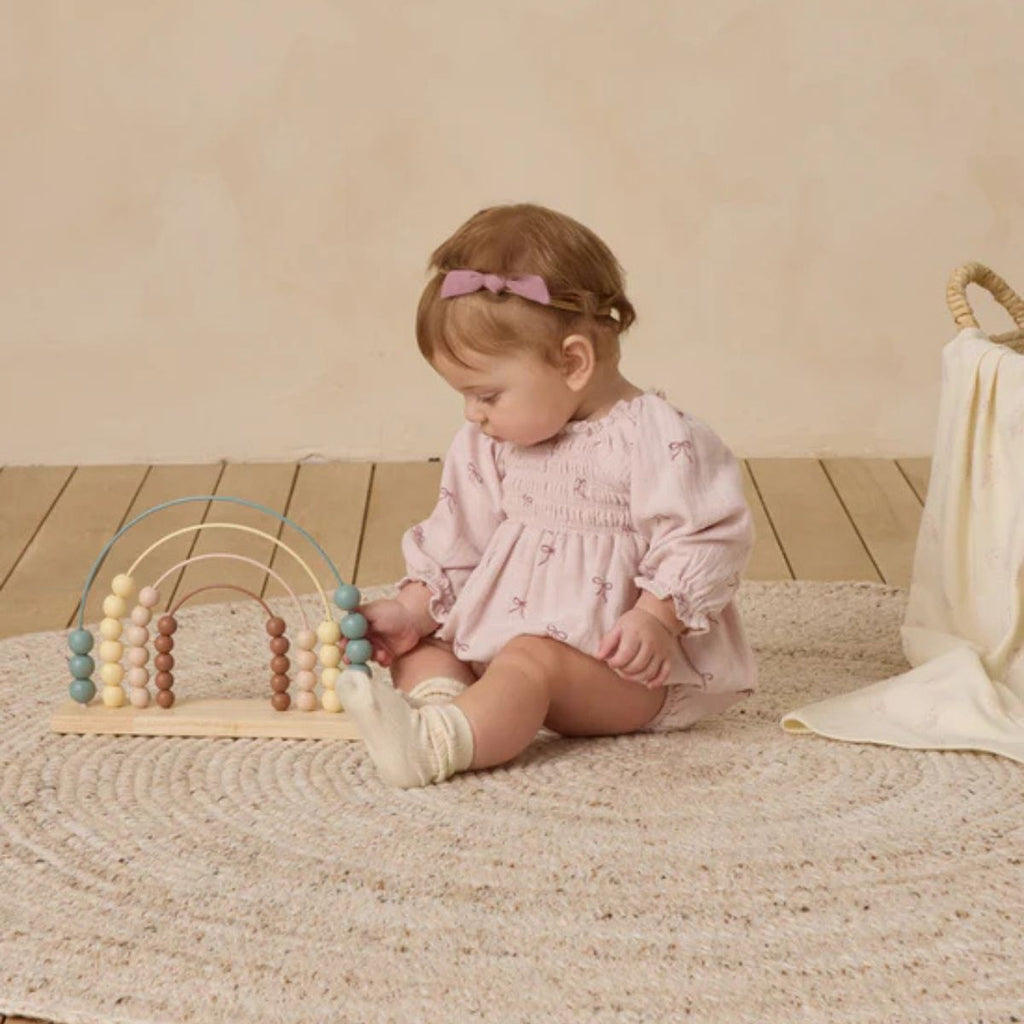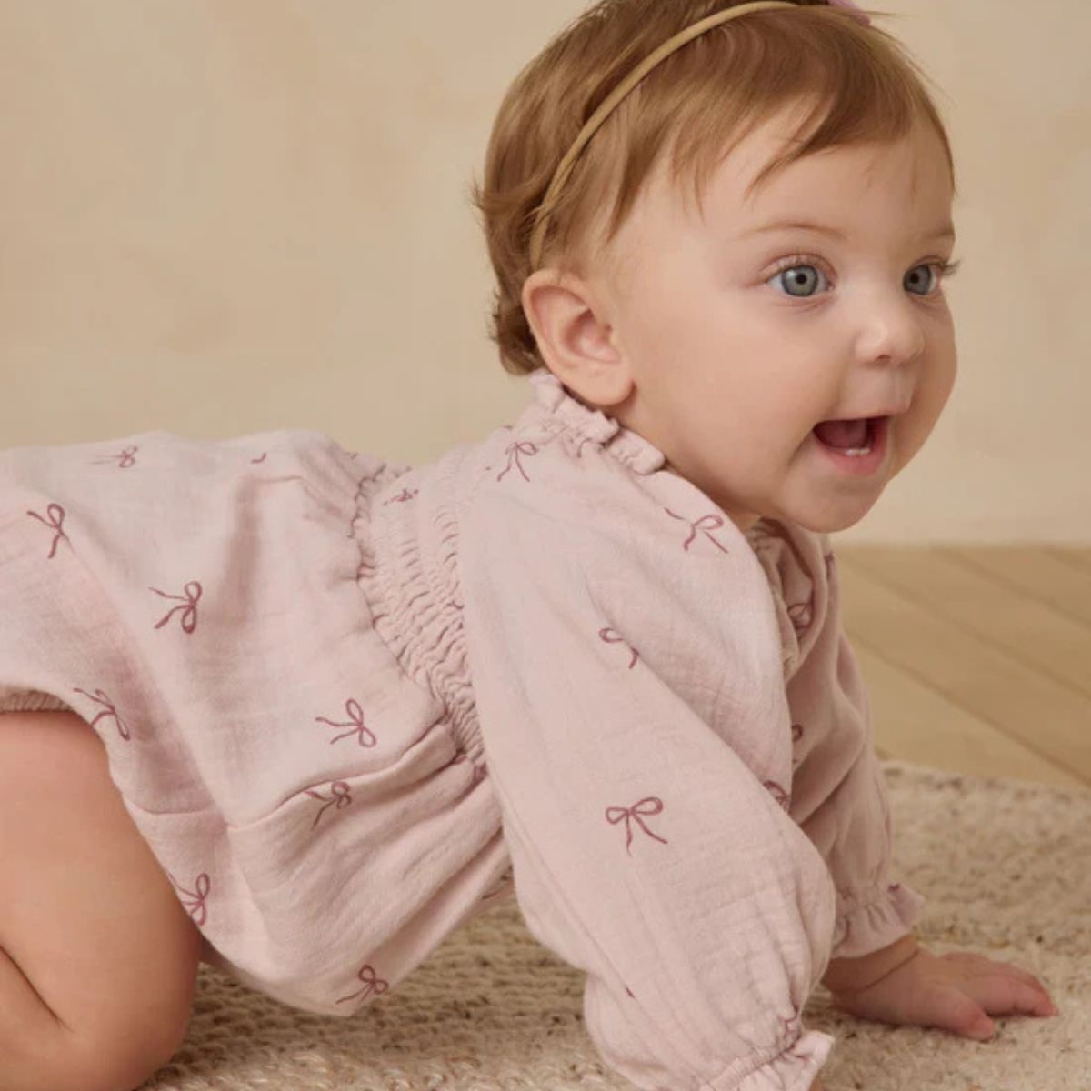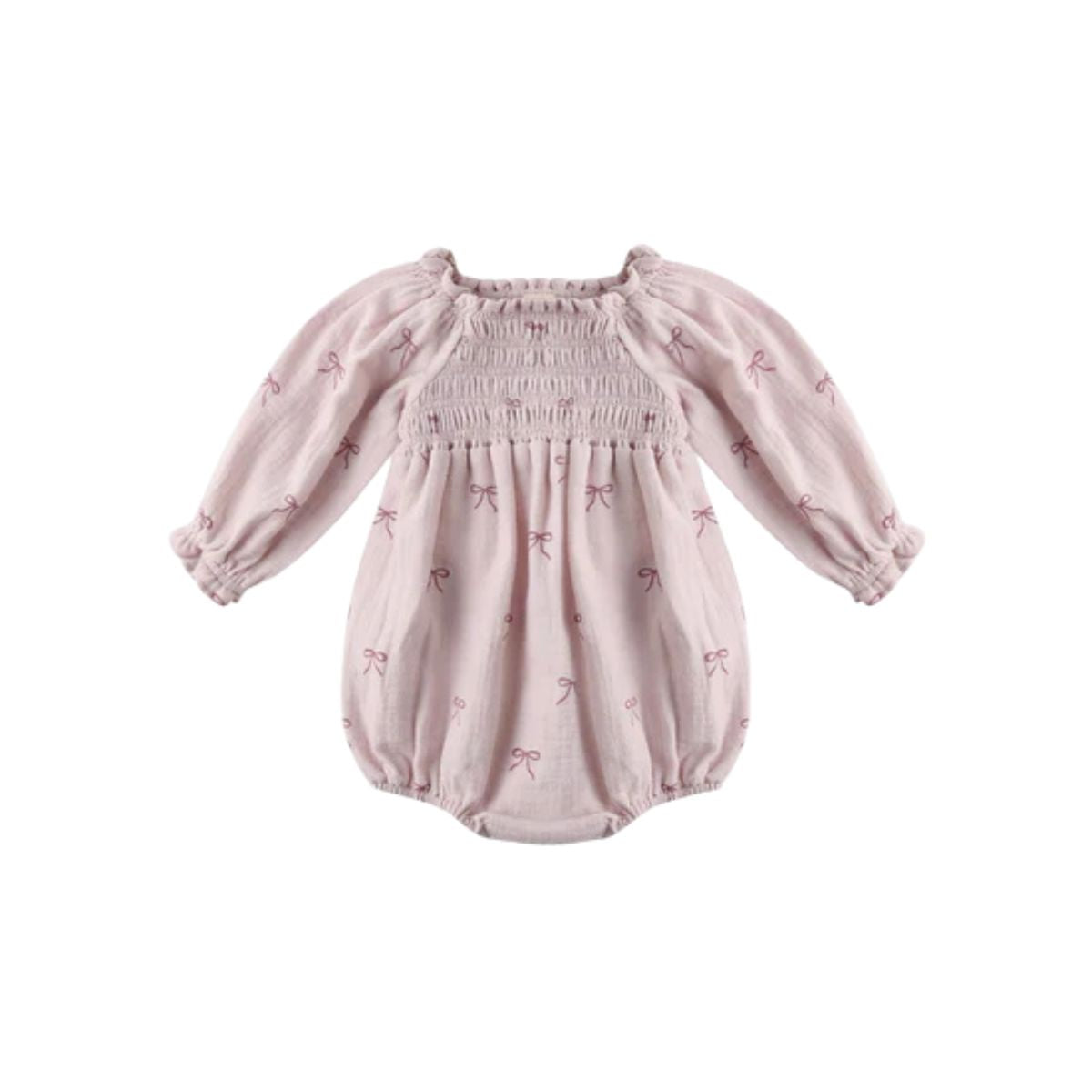 Our Eden Romper features delicate smocking across the chest, gathered ruffle details at the wrists, and a sweet ruffled neckline—an effortlessly charming piece for your little one.