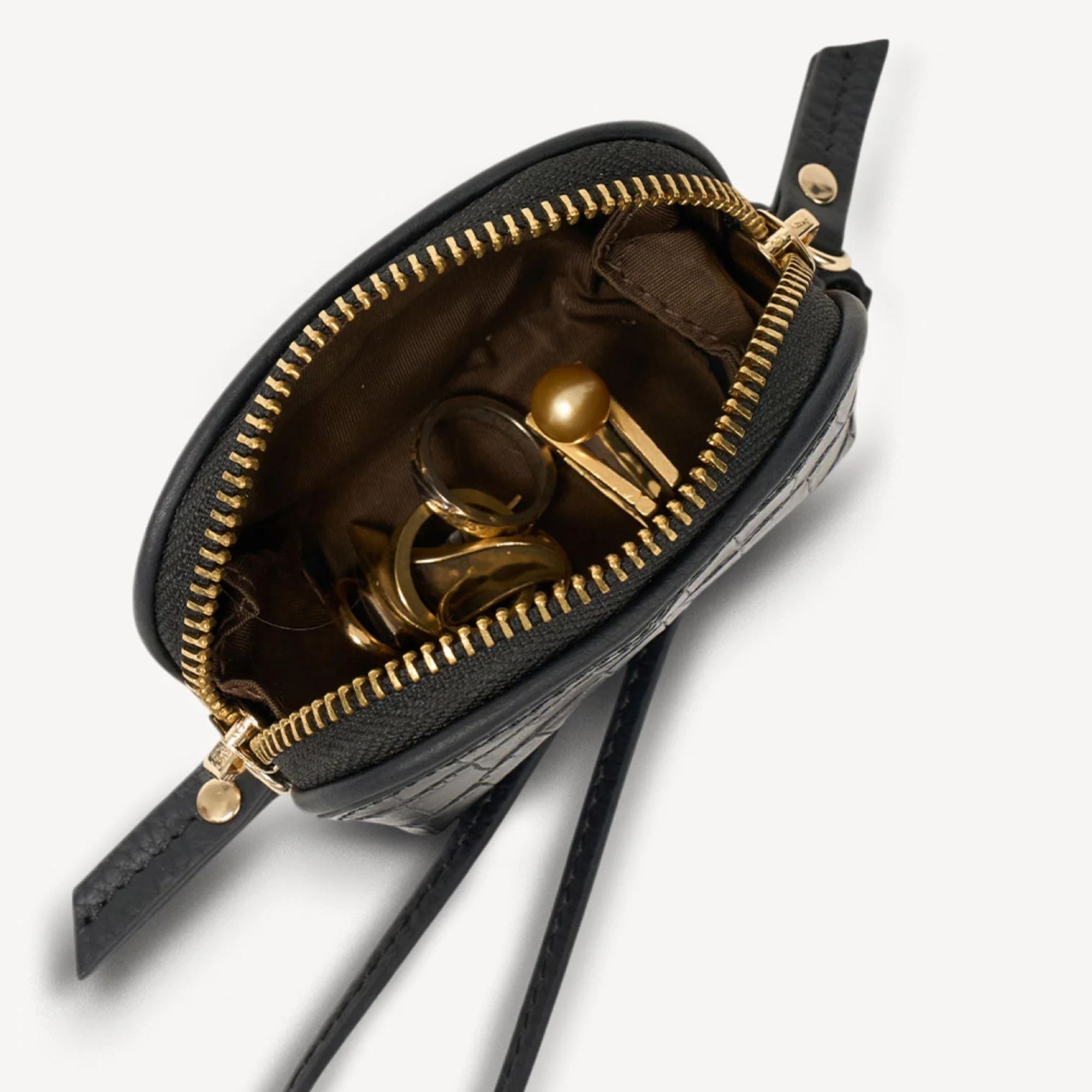 Whether it's your AirPods, emergency tampons, delicate jewellery, or any other small essential, Tarin by Saben keeps them safe and impossibly stylish. Complete with a practical looped wristlet that fastens to your favourite bag, so you'll never lose track of the little things that matter. Proof that even the smallest accessories deserve luxury treatment.