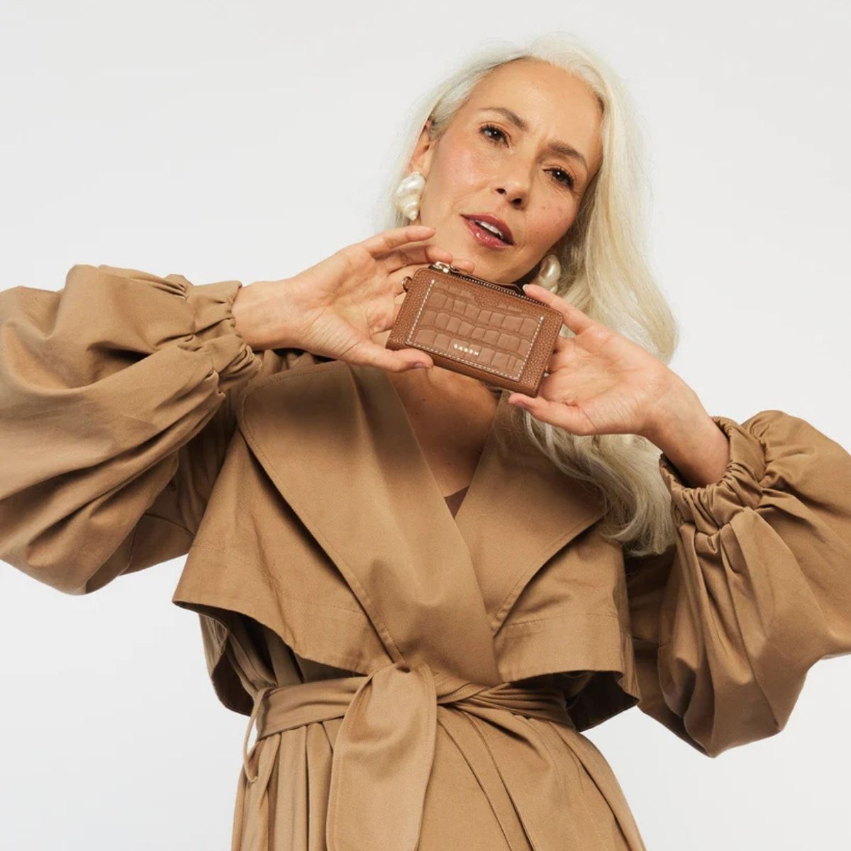 Saben - Wednesday Wallet - Tan + Croc + White Stitch