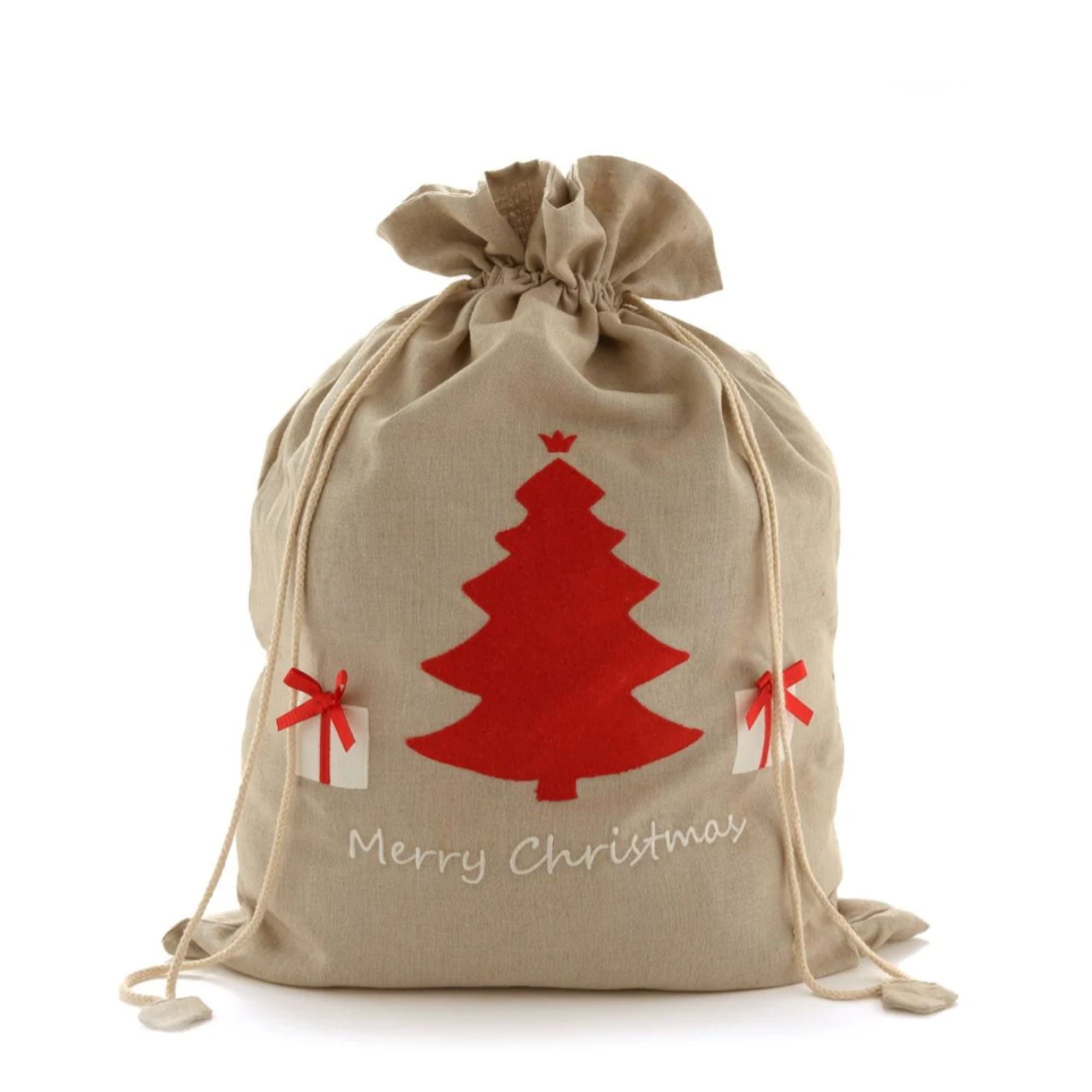 Generous in size & made with love from 100% ecru linen, Nana Huchy's Santa Sack - Tree - Non Personalised are begging to be filled with gifts & goodies. Our classic christmas sacks look stunning beneath the tree or at the foot of a child's bed, becoming an instant family heirloom to pass down through generations.