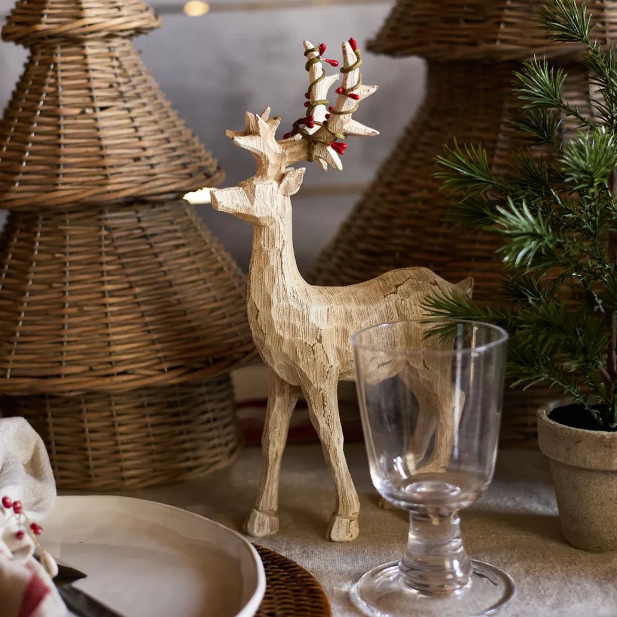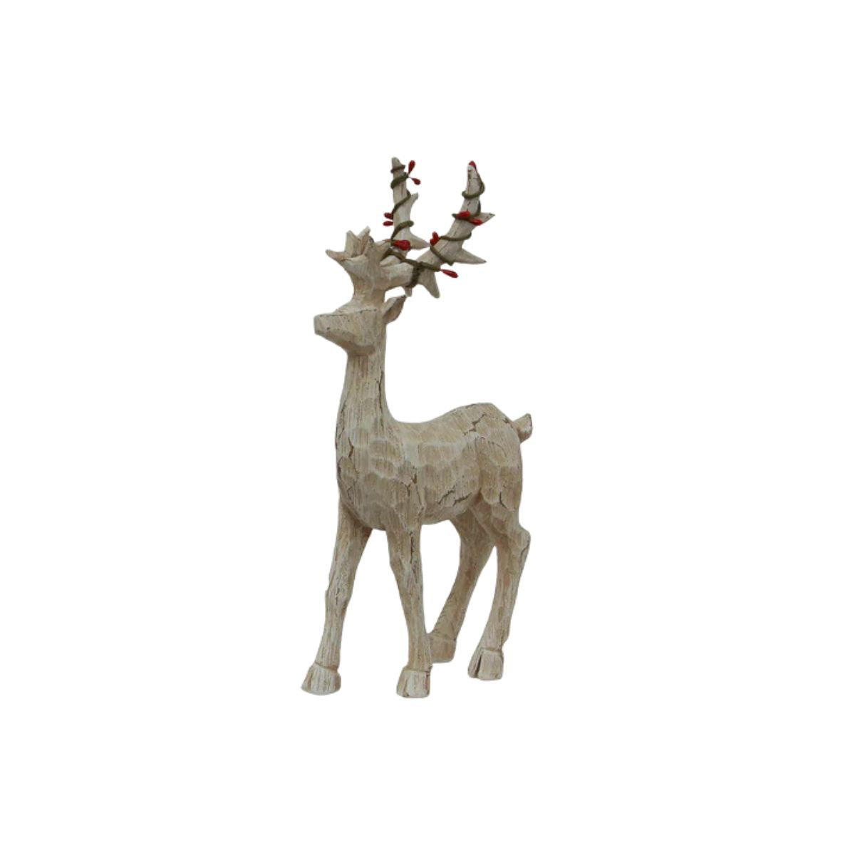 Bring a little Nordic magic to your Christmas décor with this adorable Scandi-style deer. Featuring a carved wood-like finish in soft beige and playful red bead antlers, it’s full of rustic charm and festive character. Perfect for adding a sweet Scandinavian touch to your holiday display.