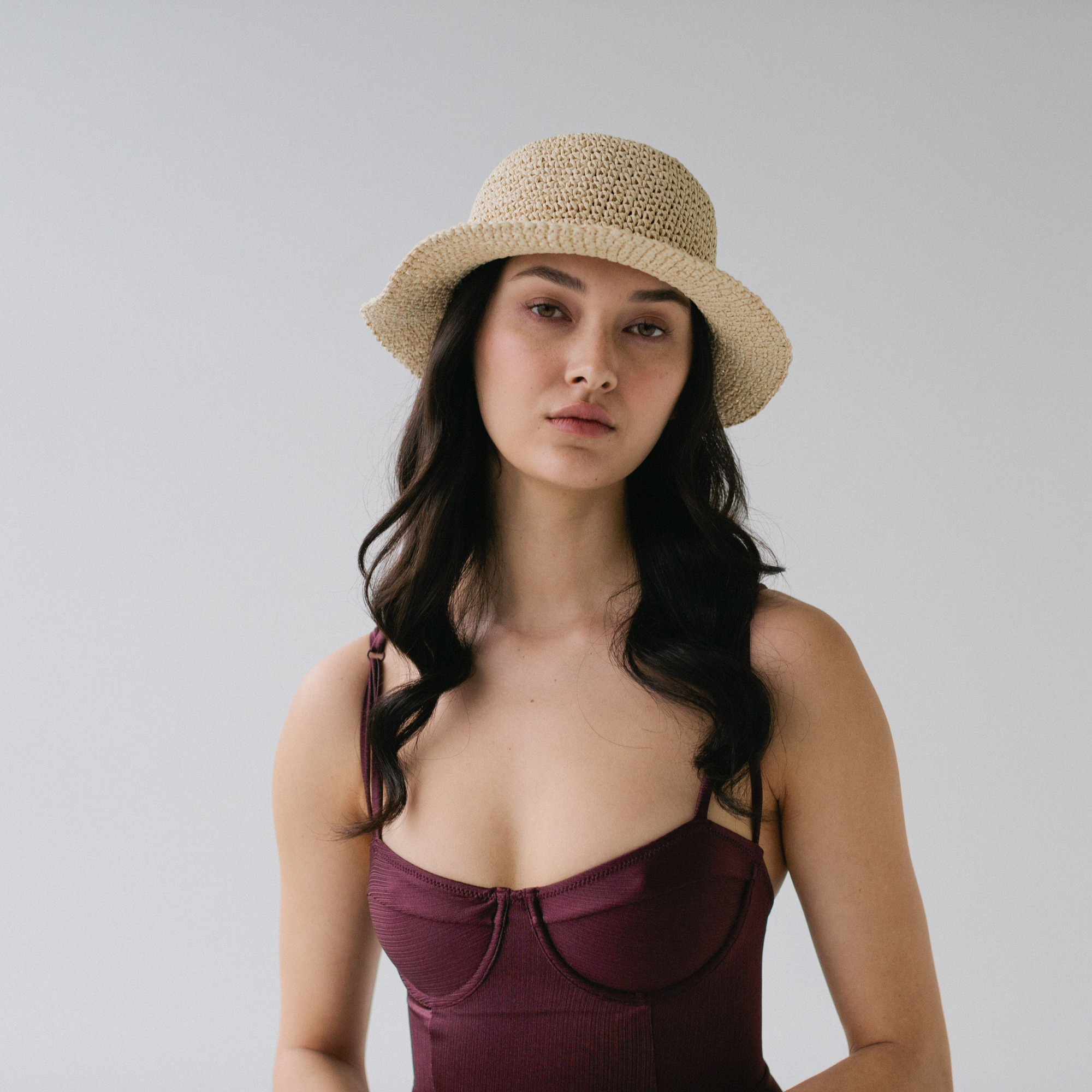 This cute ivory crocheted so relaxed hat is perfect for summer! You can even roll it up to put it in your bag to take it on the go! S/M size is 57cm circumference and L/XL is 59cm circumference, both are 11cmH with a 7cmW brim.