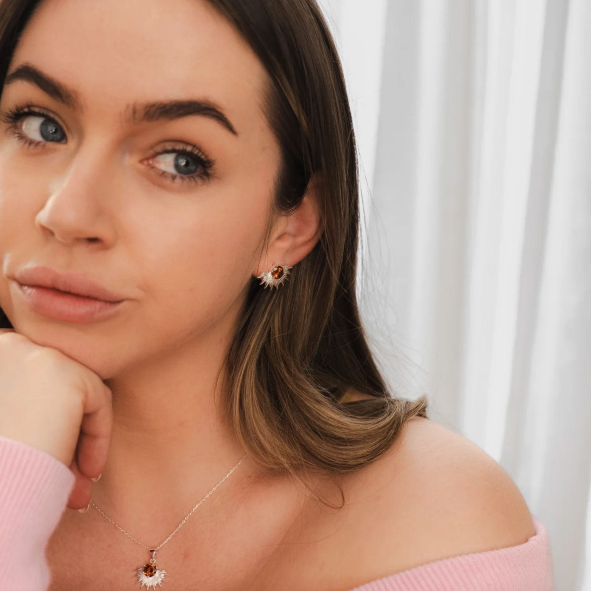 These captivating earrings are timeless and available in silver and 18k gold plating to suit your metal preferences. The unique hue of this accessory is the perfect "pop" to add to your jewellery collection!