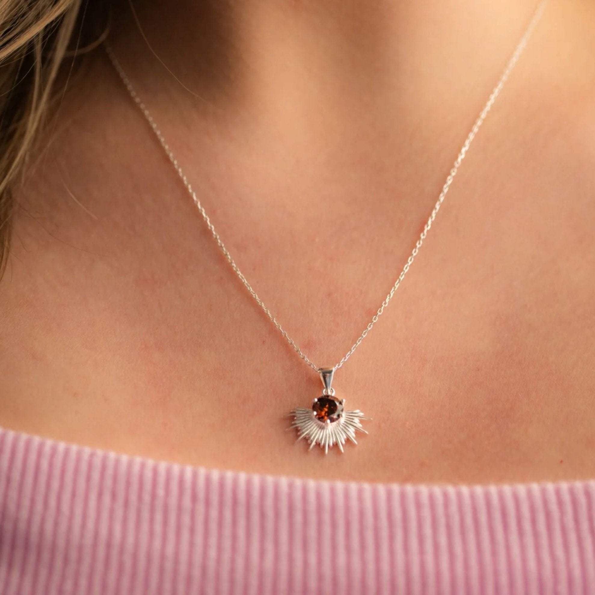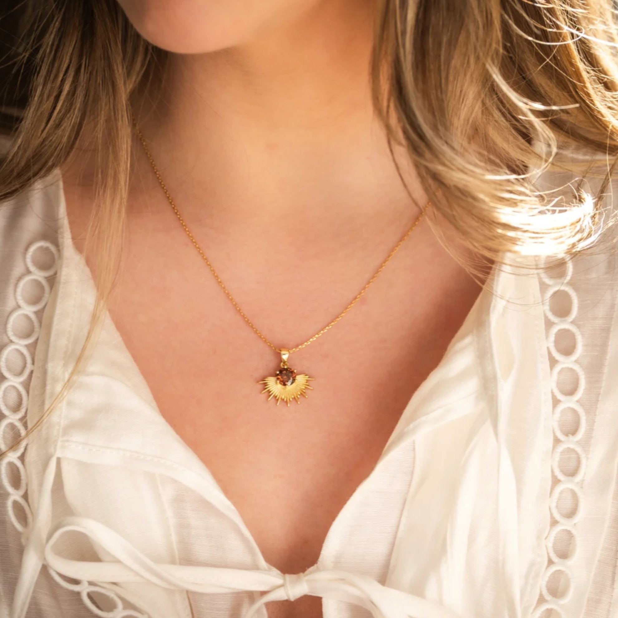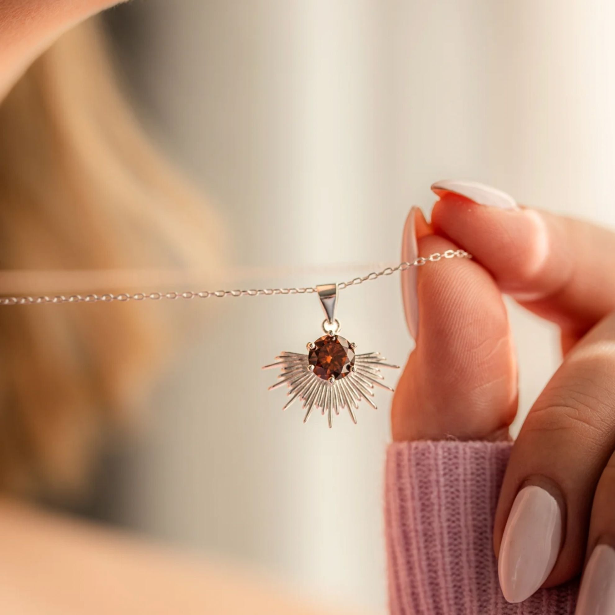 Introducing Silver Linings Collective's exclusive Solace Necklace in the enchanting coffee colorway! Add a touch of sophistication to your wardrobe accessories with this subtle yet captivating hue. Available in sterling silver or 18k gold plating.