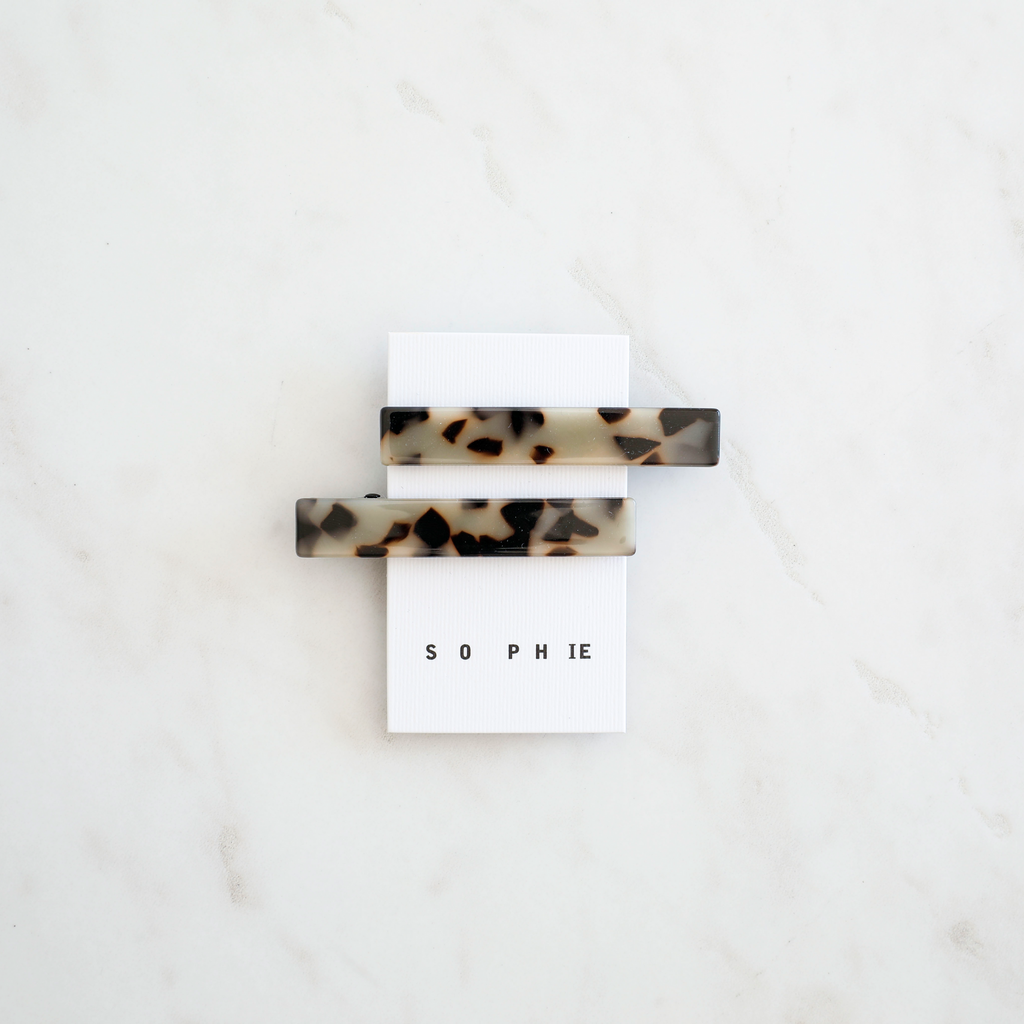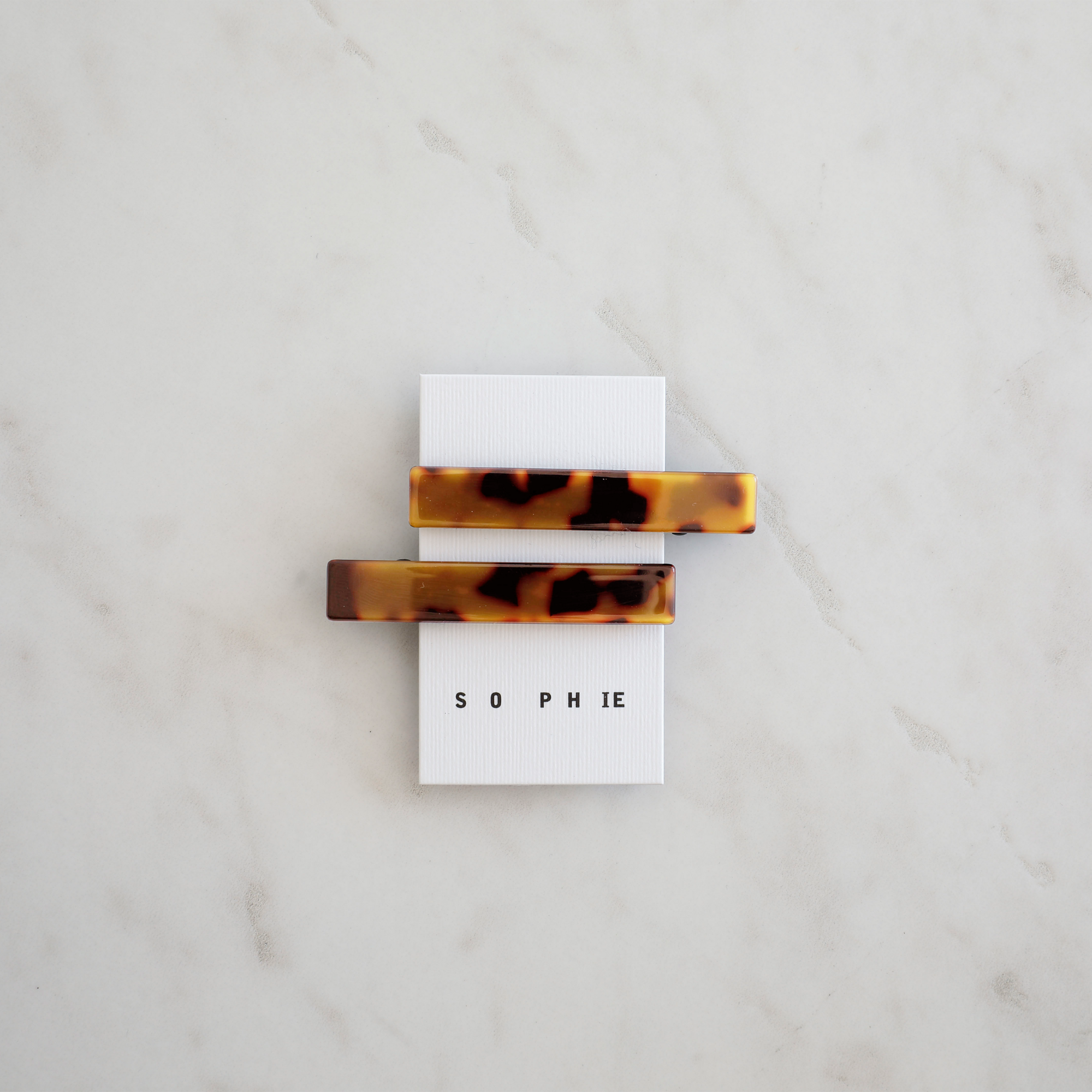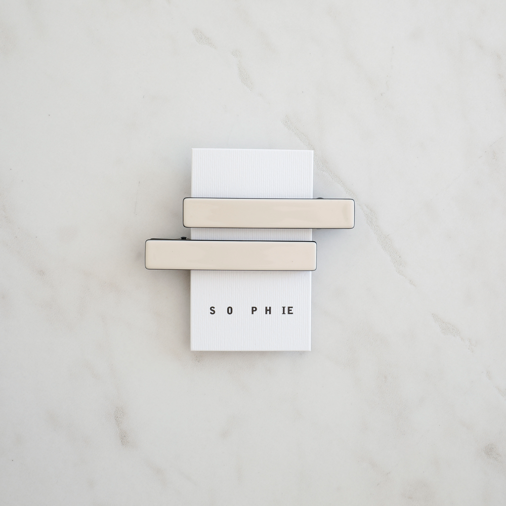 These Sophie straight clips from Sophie come in a convenient set of two clips. Cute for styling & gifting too.